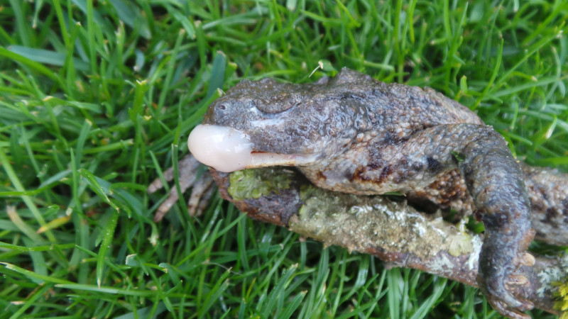 Ein paar Meter außerhalb des Gartens habe ich noch eine verendete Kröte gefunden, die lag aber wohl schon länger:
