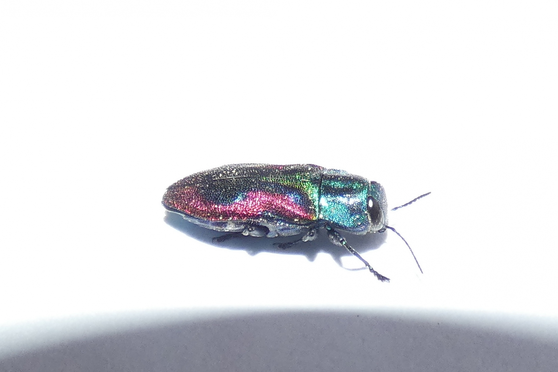 Heute morgen fand Mr. Grüni einen uns unbekannten kleinen Käfer im Garten. Wir machten gleich Fotos von ihm vor neutralem Hintergrund, um ihn zu bestimmen.