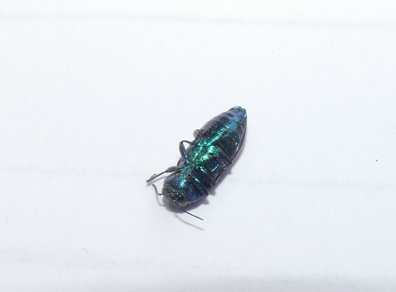5.: Hab ihn vor dem Freilassen mal vorsichtig umgeschubst. Er stellte sich tot und so konnten wir seine blaugrünlich-metallisch schimmernde Unterseite auch fotografieren.