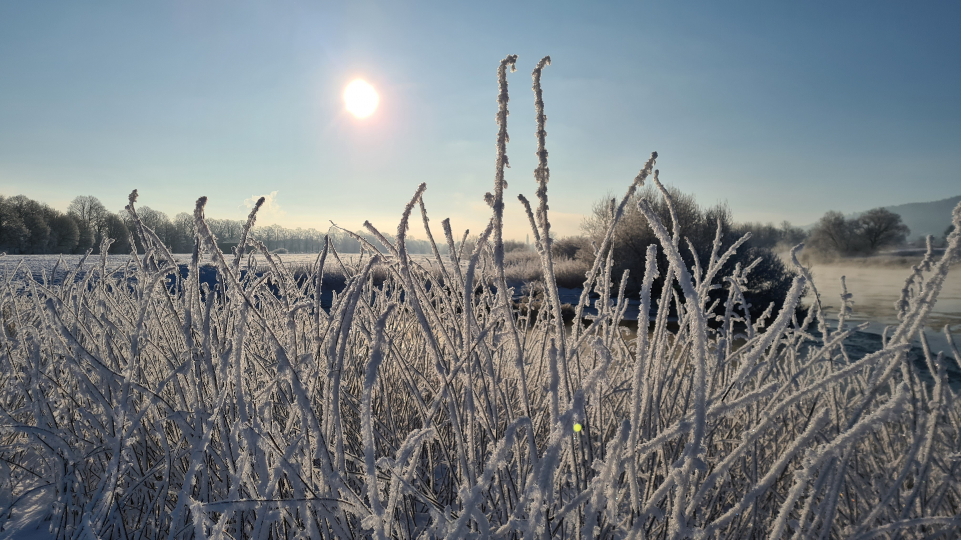 Ich hab heute auch mal ein paar Bilder vom Winterwonderland mitgebracht. Hier war es am Samstag und Sonntag morgen jeweils bitterkalt, -21°Grad sind definitiv Temperaturen, die ich nicht gewohnt bin. Samstag war ich an der Weser, auf der Eisschollen trieben - die Sonne schien und es wsr wirklich wunderschön.