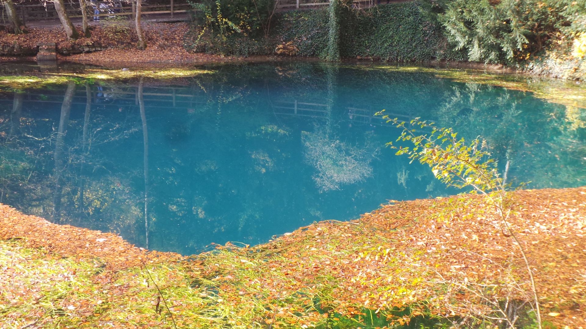 Vorletztes Jahr hatten wir (mein Mann, unsere Enkelin und ich) diese berühmte Karstquelle auf einer Reise in die Schwäbische Alb besucht, da das, seit ich vor vielen Jahren Eduard Mörikes "Stuttgarter Hutzelmännlein" gelesen habe, eines meiner "Wollte ich schon immer mal sehen"-Naturwunder war. Wir waren dort an einem Wochenende im September bei wunderbarem Wetter und konnten die typische tintenblaue, teilweise fast grüne scheinbare Farbe des Wassers bewundern...gemeinsam mit ein paar hundert anderen Touristen!