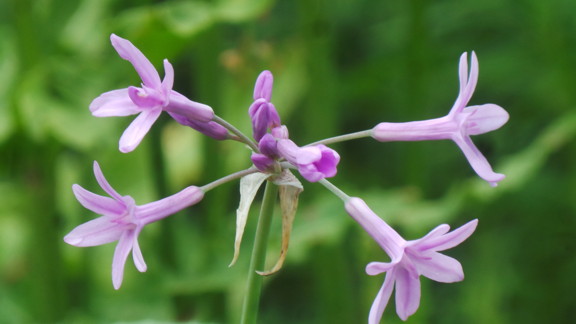 Es handelt sich um Knoblauchgras ( Tulbaghia violacea ), welches sie selbst höchstpersönlich dieses Frühjahr erworben und an der Stelle gepflanzt hatte, wo ich die Blüte sah.