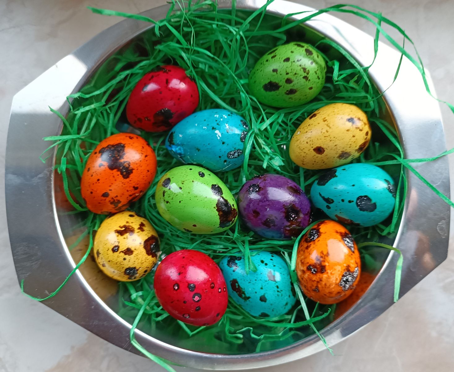 Ich habe am Donnerstag erstmals auch Wachteleier mit gefärbt; sind recht nett geworden, wie ich finde.