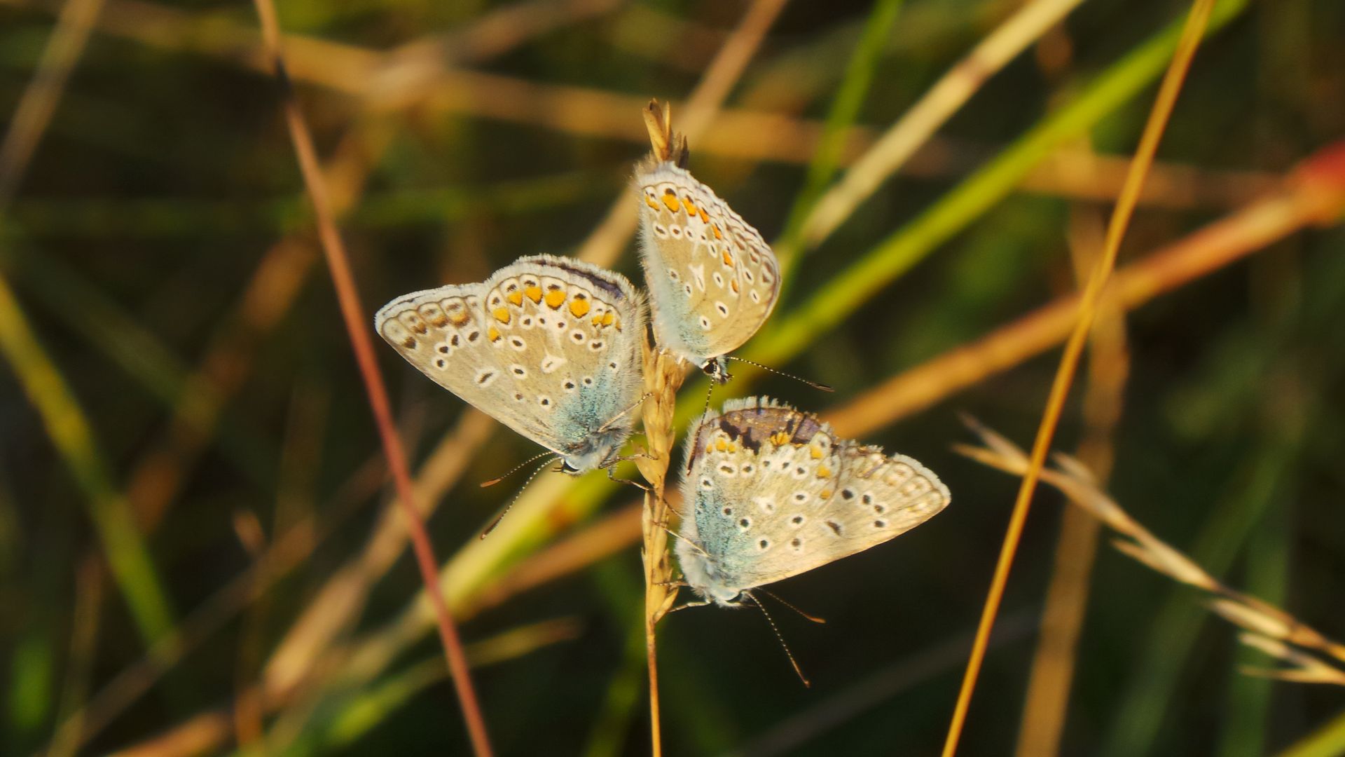 Als was kann man die drei auf dem Grashalm denn ansprechen? Hauhechelbläulinge ? Oder sind es himmelblaue oder Esparsettenbläulinge?