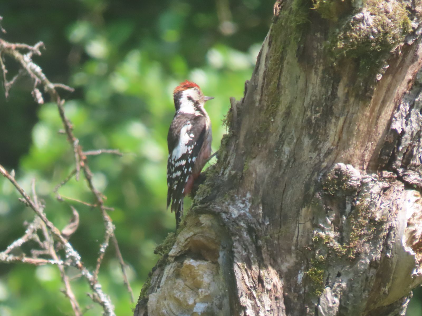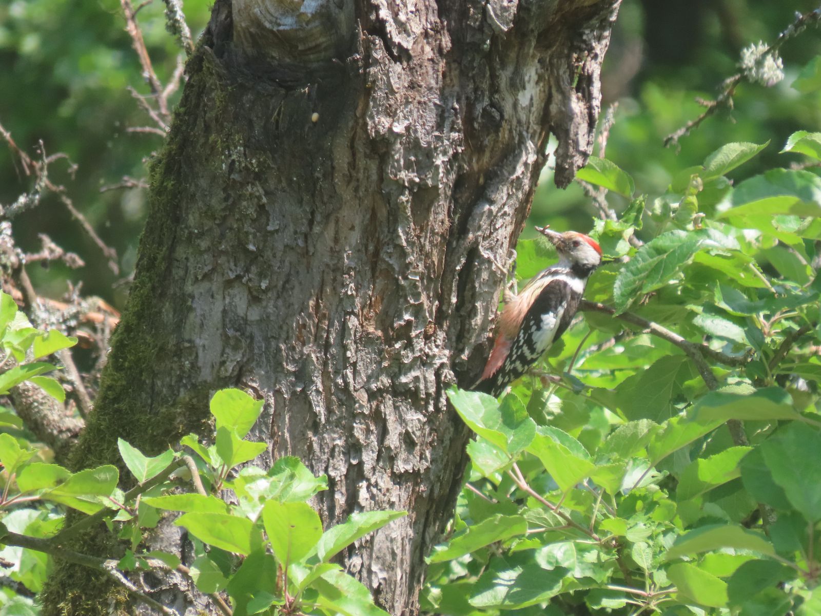 Nicht schlecht, Herr Specht. Auch die Spechte sind wieder am brüten. Das wäre bei uns Familie Mittelspecht, die sich ihr Heim in einem alten Apfelbaum eingerichtet hat.