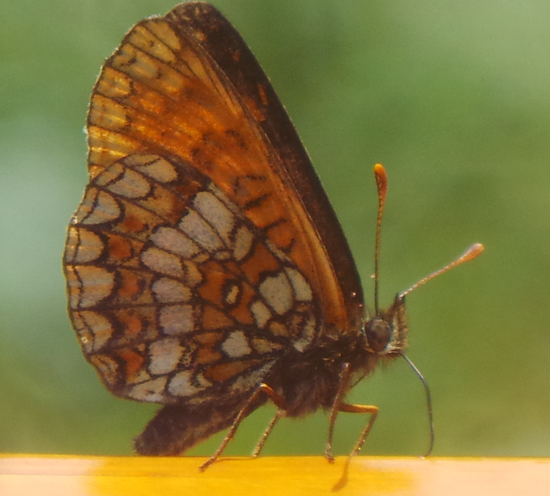 Ich hätte hier jetzt Wachtelweizen-Scheckenfalter (Melitaea athalia), auch Gemeiner Scheckenfalter genannt, in Verdacht gehabt.