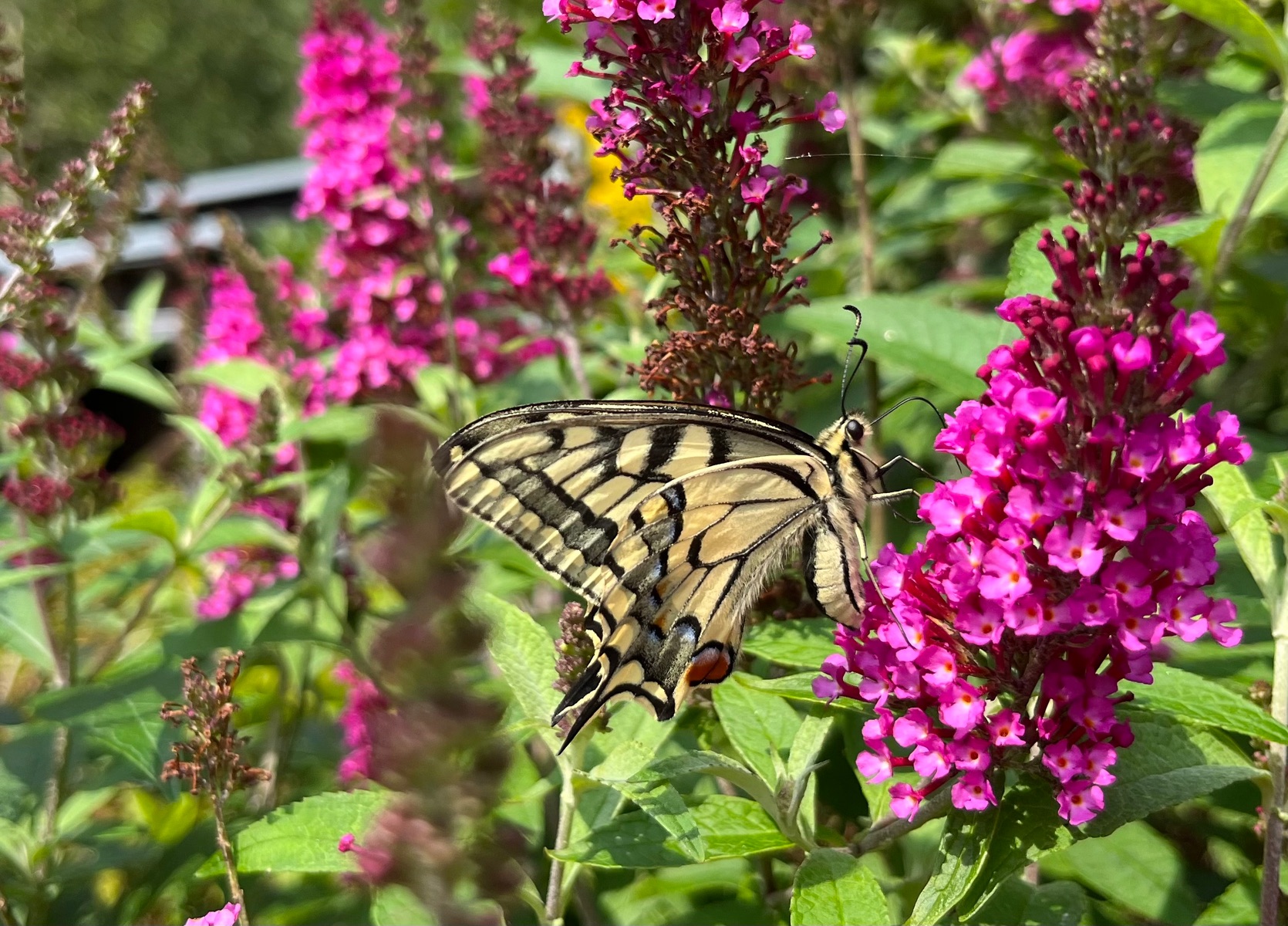 Und immer bevorzugen sie den Sommerflieder, obwohl eine Menge anderes an Stauden blüht. Sorry Tuppie, ich mag sie einfach, auch wenn sie nicht hierher gehören.