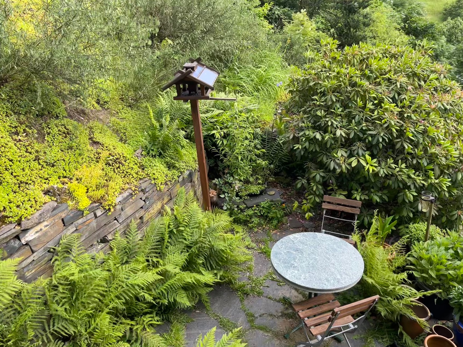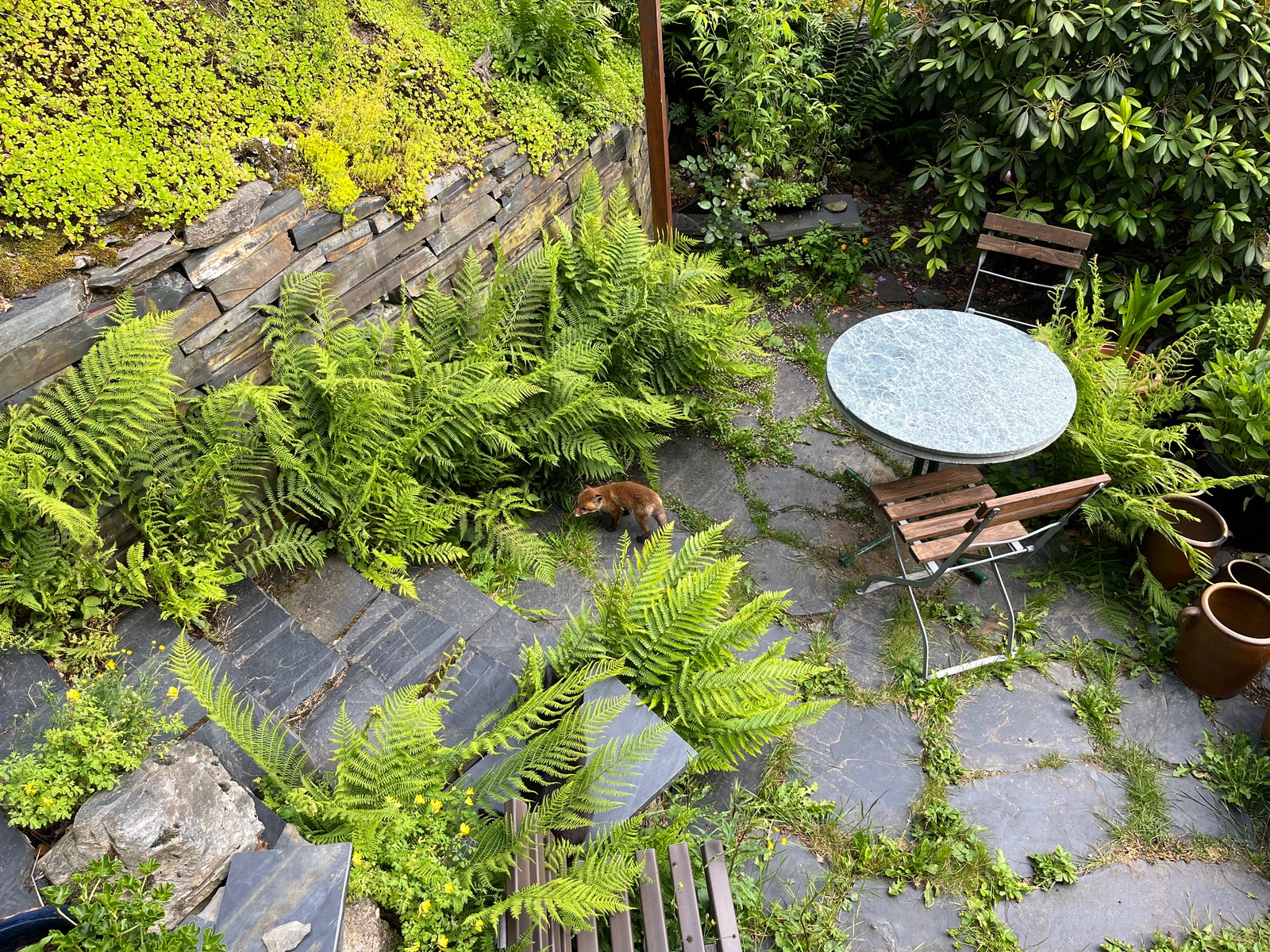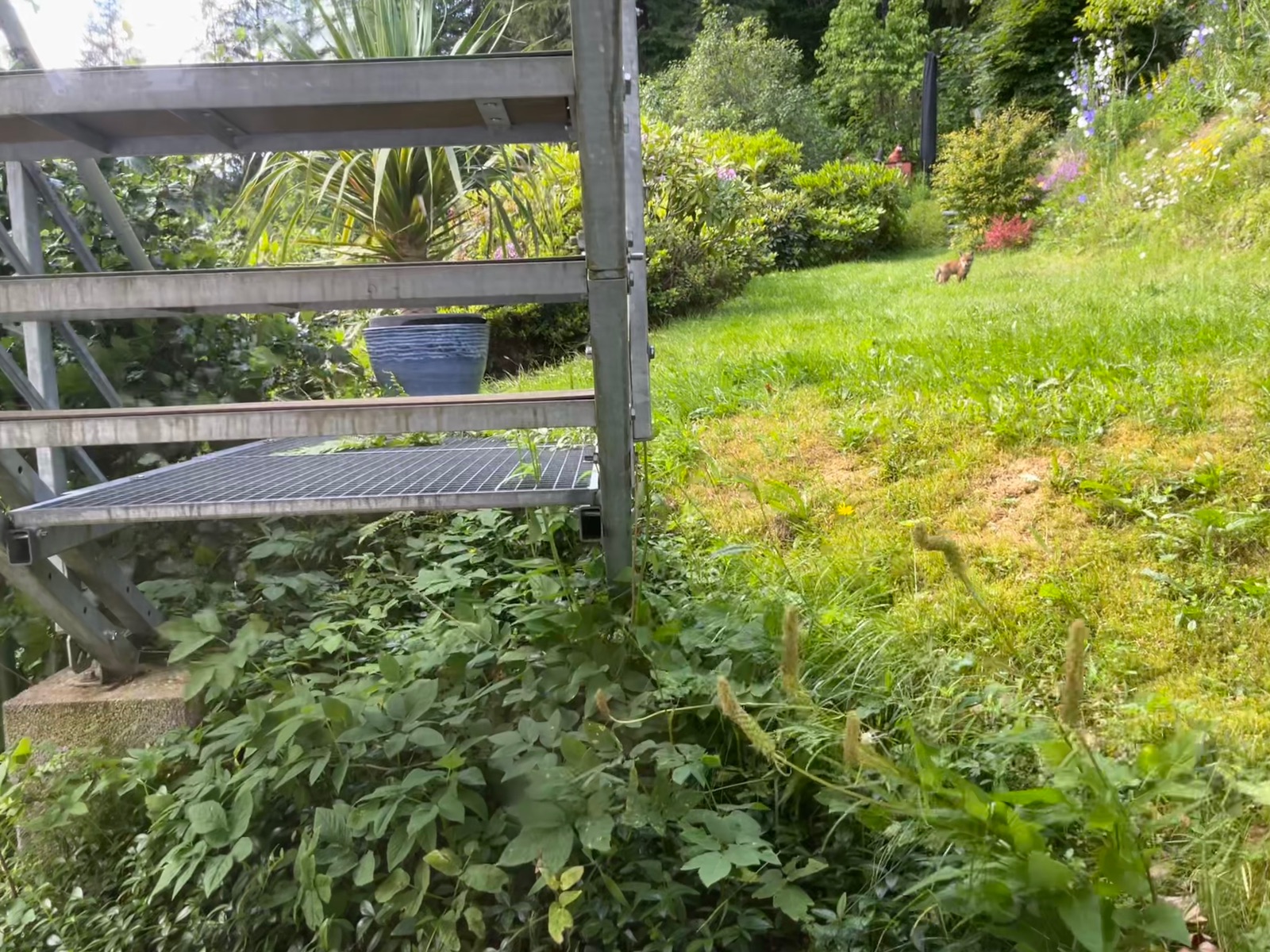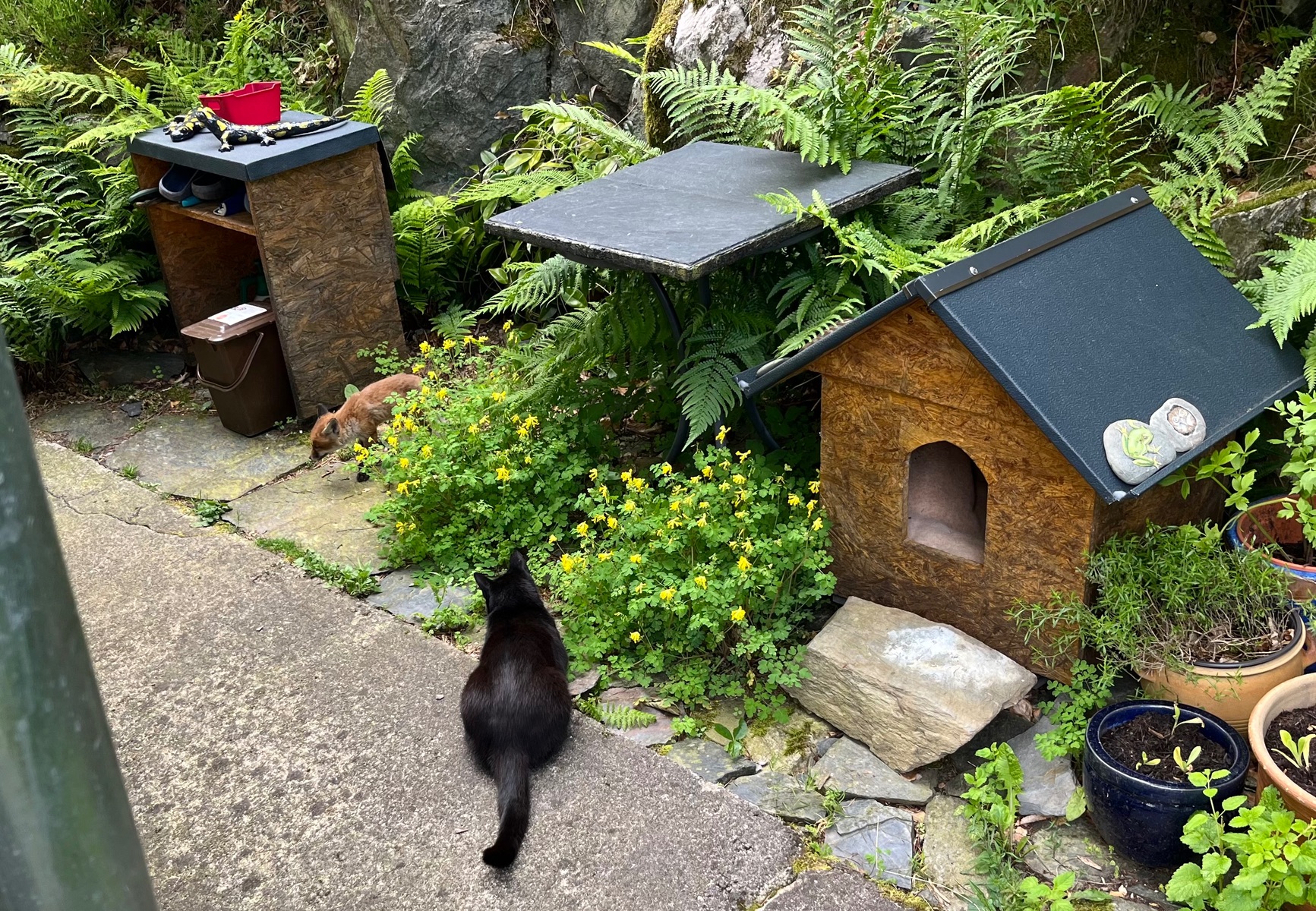 Fuchsi auf dem Weg zum Komposteimer, den ich gerade mit Küchenabfällen gefüllt habe. Den Deckel bekam er dann zu seinem Kummer nicht geöffnet.