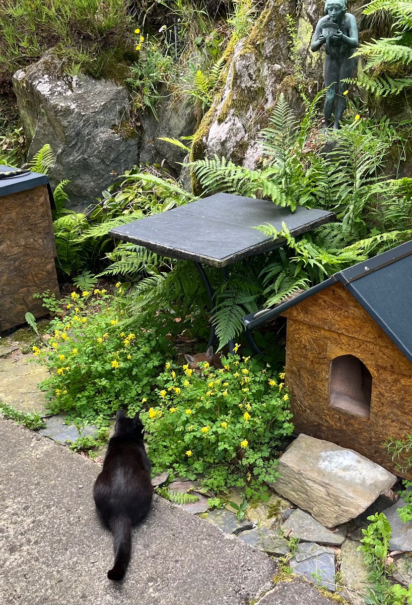 Kater Manfred hält das Ganze wohl für Katzenkino und folgt mit Interesse.
