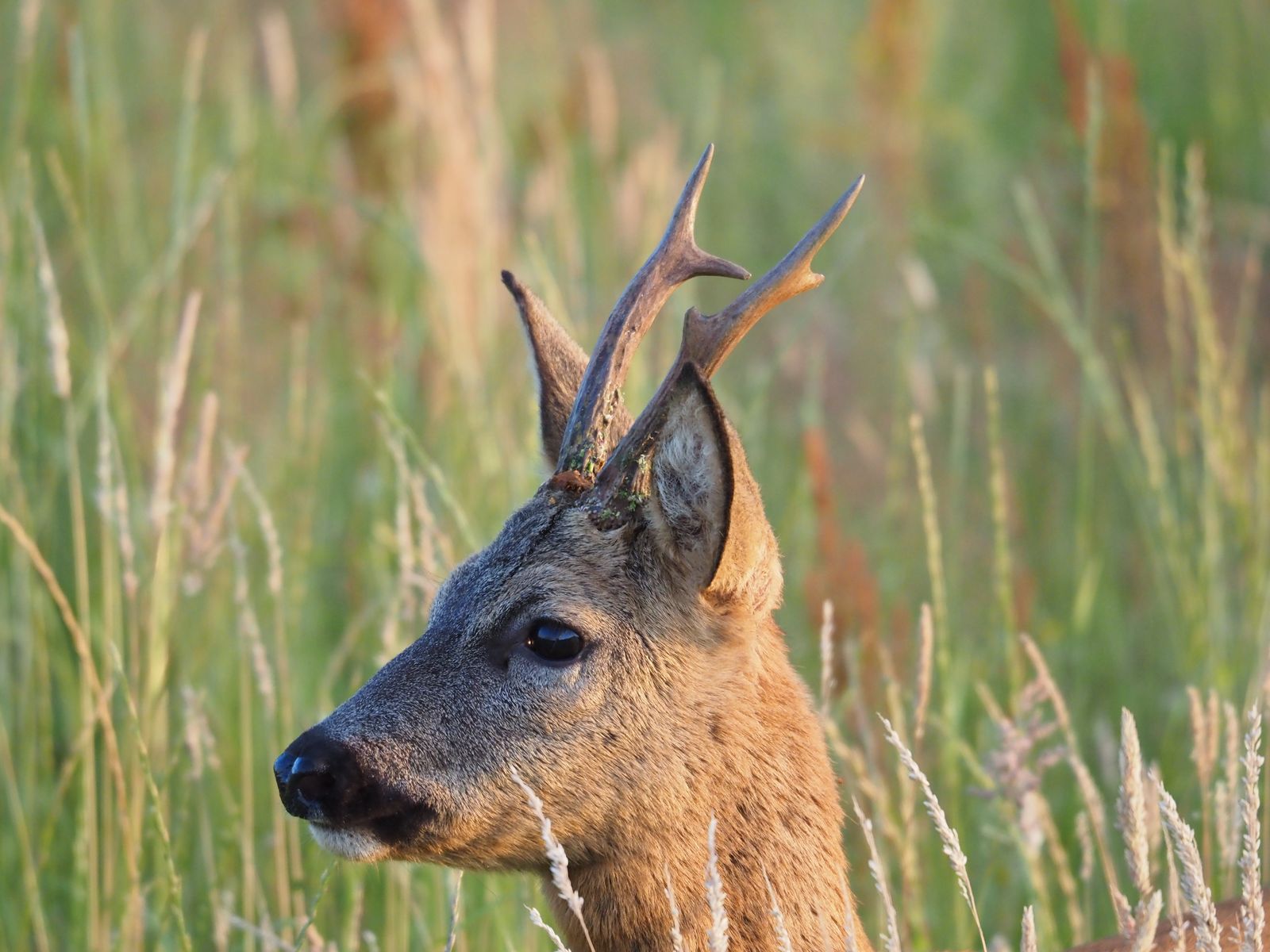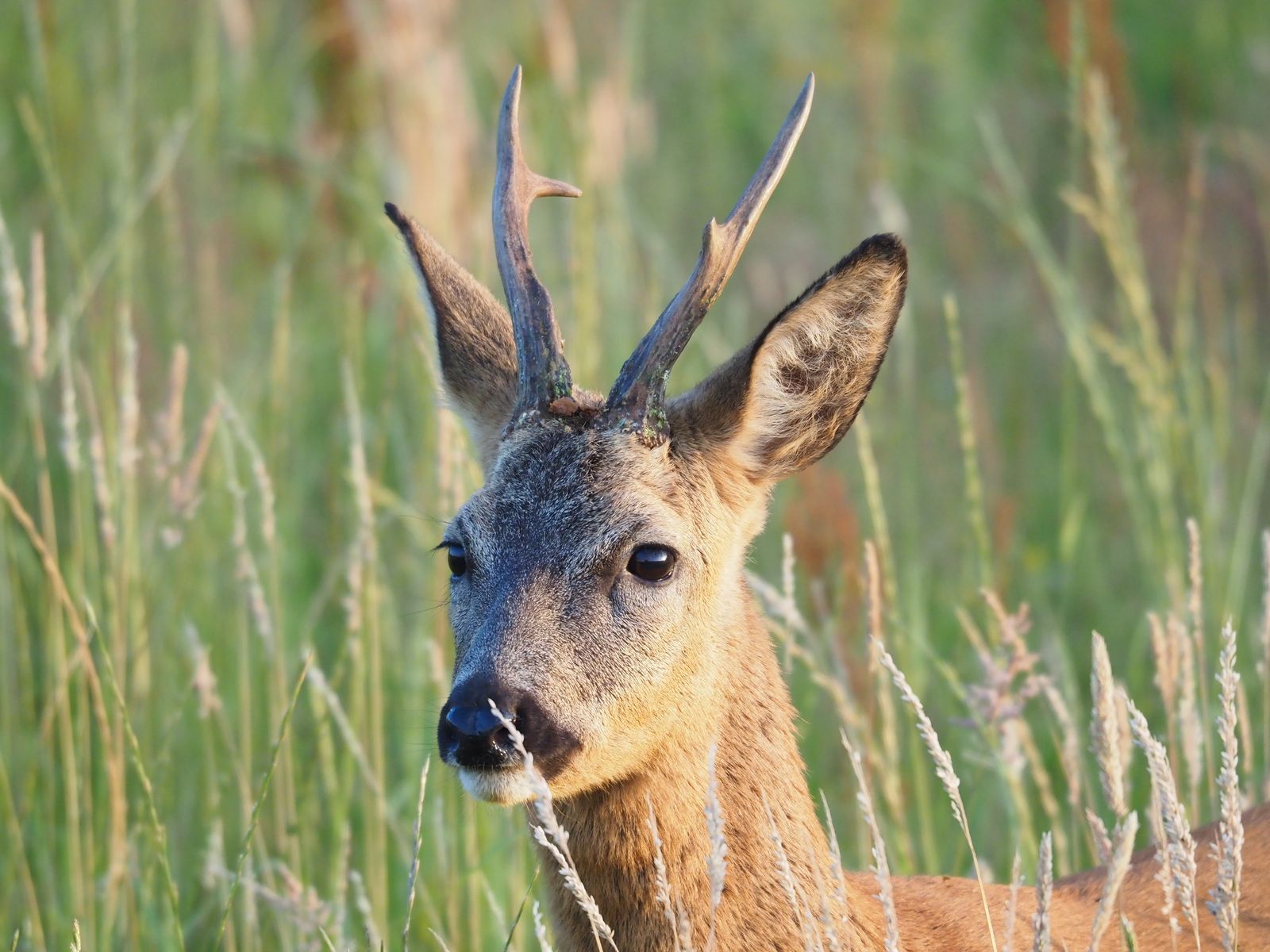 Bild 10: Das Schmalreh ist noch nicht ganz verfärbt, hat also noch viel graues Winterhaar