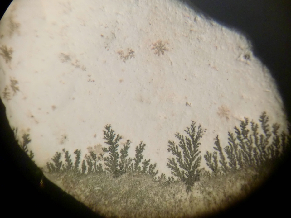 Eben hab ich sie aber durchgeschaut und dabei entdeckte ich diese (m.M.) Dendriten. Erinnert mich an ein Wäldchen, über dem die ersten Schneeflocken fallen....Die Natur ist doch noch der beste Künstler (neben Tuppie!