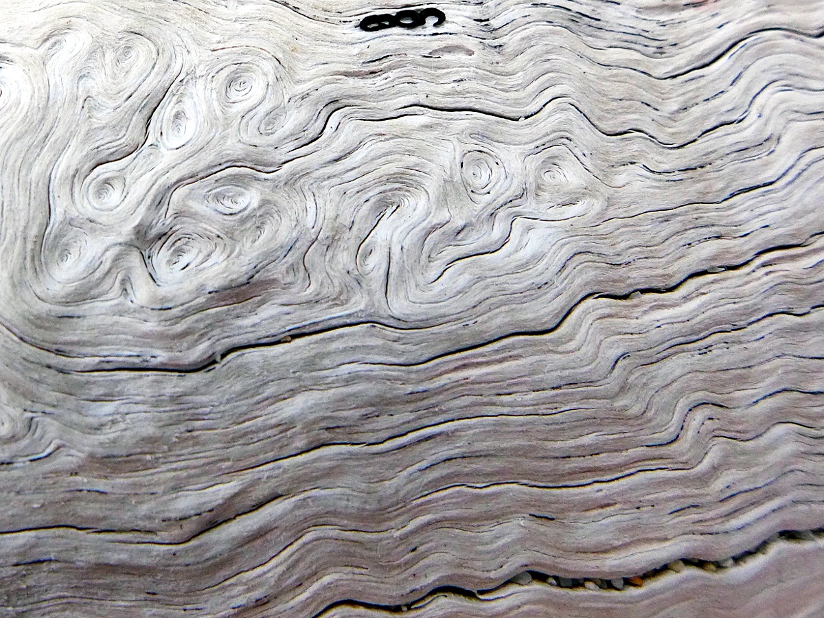 05 oder mal verblichenes Holz am Strand mit Sand (mit "irgendwas" Schwarzem, möglicherweise ist das etwas Flechtenartiges)