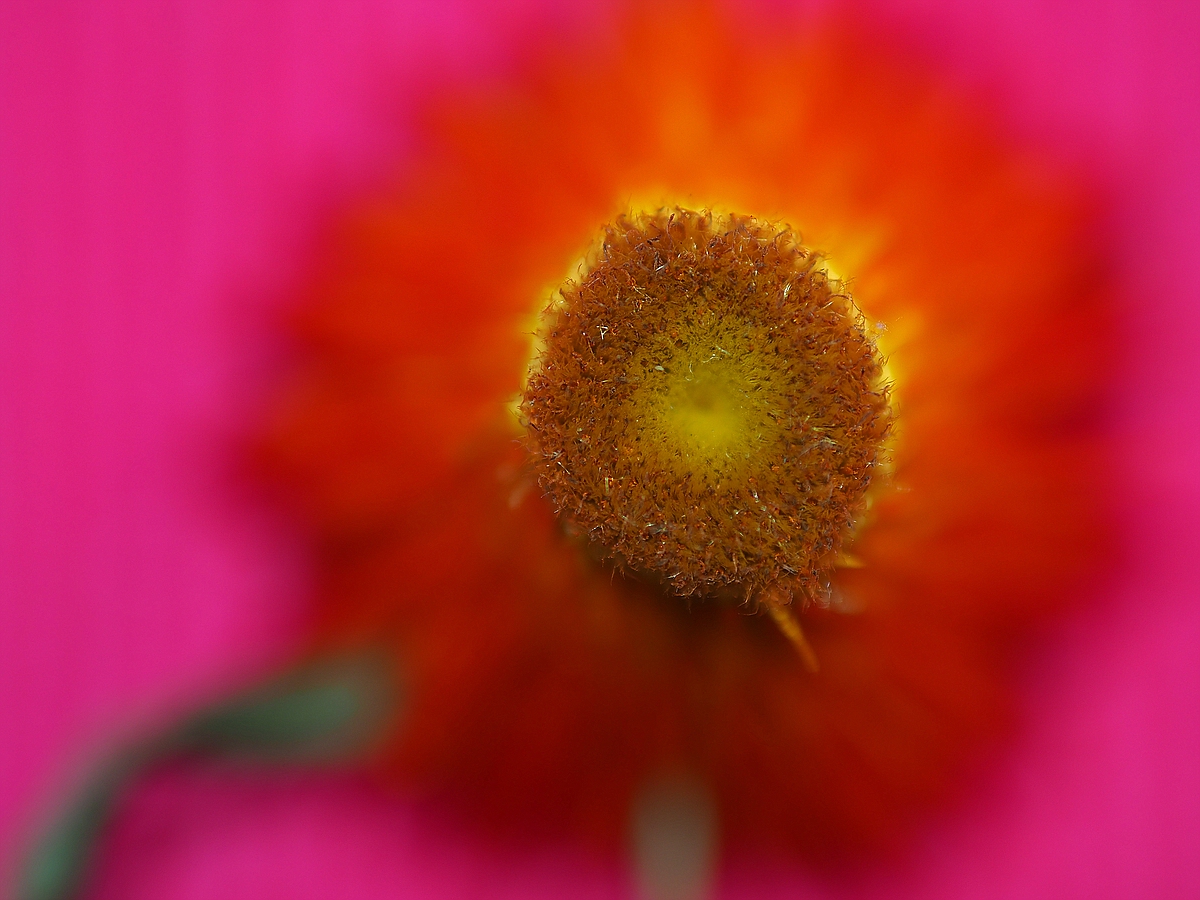 Manchmal sind es auch schlicht und ergreifend die Farben, die mich an der Fotografie so reizen. Das ist zum Beispiel der Grund, warum ich das Foto Nr. 9 mit dem Judasbaumherbstblatt trotz Deiner absolut berechtigten Kritik so mag. Für mich gilt hier hauptsächlich: was für wunderschöne Farben! (Die Farben waren in dem Licht wirklich so, ich habe nicht dran rumgespielt.) Und damit sind wir also in einer weiteren, absolut nicht zu objektivierenden Kategorie. Ich kann mir gut vorstellen, daß sich bei den Farben von Bild 8, der Strohblume, bei manchen Zuschauer die Zehennägel aufrollen. Das ist wirklich schon sehr quietschig (und ein fröhlichstpinkes Platzdeckchen auf dem Tisch ist dafür verantwortlich.) Aber Farbe ist eben, gerade bei so graphisch vereinfachten Motiven, auch ein mächtiges Gestaltungsmittel. Vor einem neutralen Hintergrund hätte das Bild vermutlich viel schlechter funktioniert.