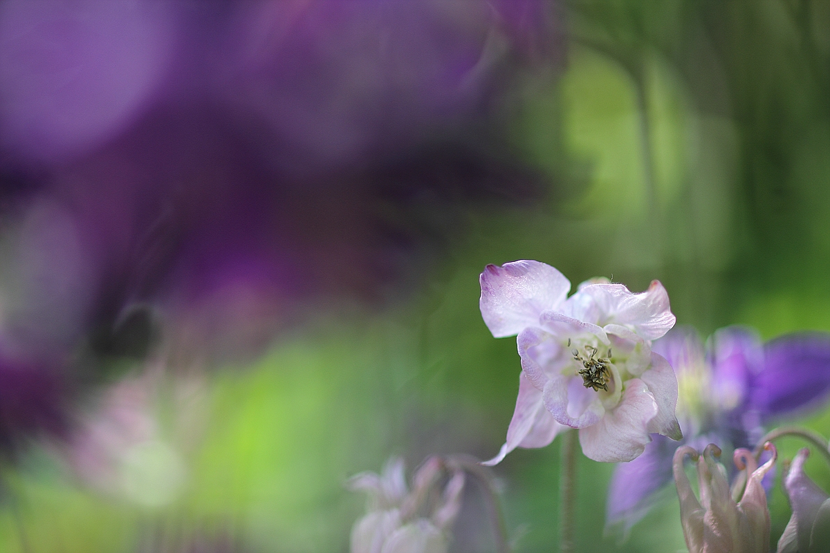 Bild 6 und 7 (Akelei und Kirschzweige - kleines, aber in seiner Gesamtheit sehr scharfes Hauptobjekt mir sehr viel Bezug zum Hintergrund),