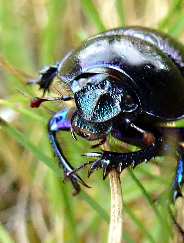Der grün-bunt schillernde Käfer müsste ein Blattkäfer sein, vielleicht Chrysolina fastuosa.