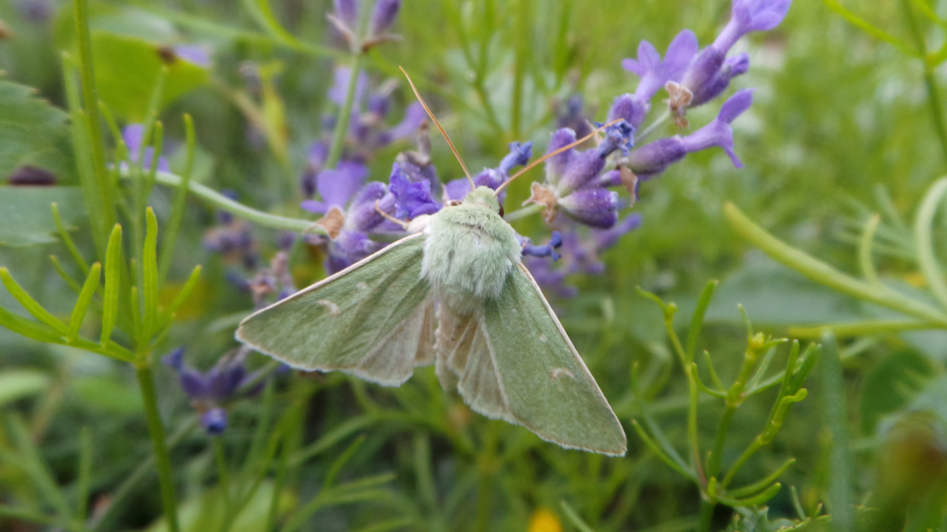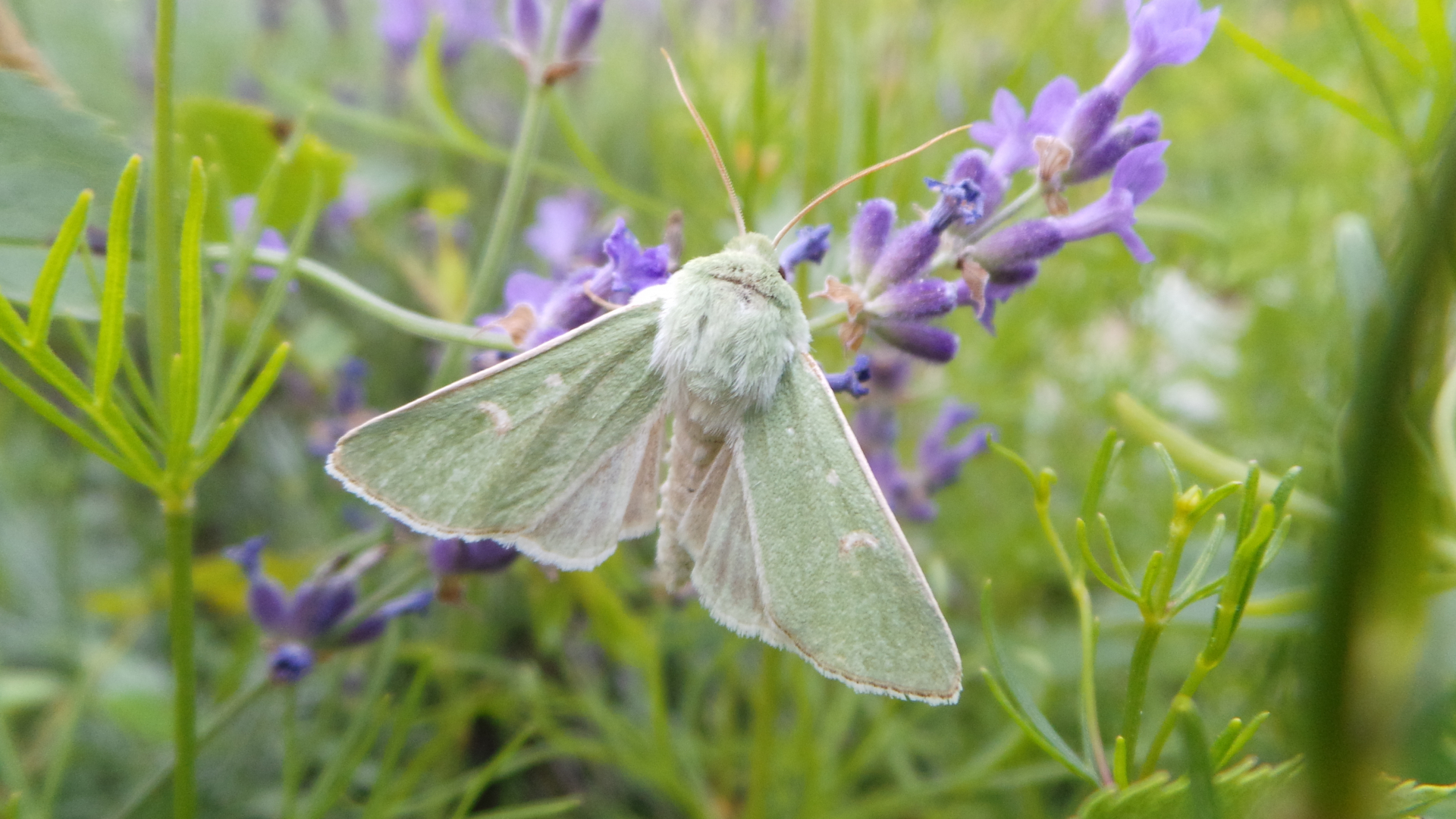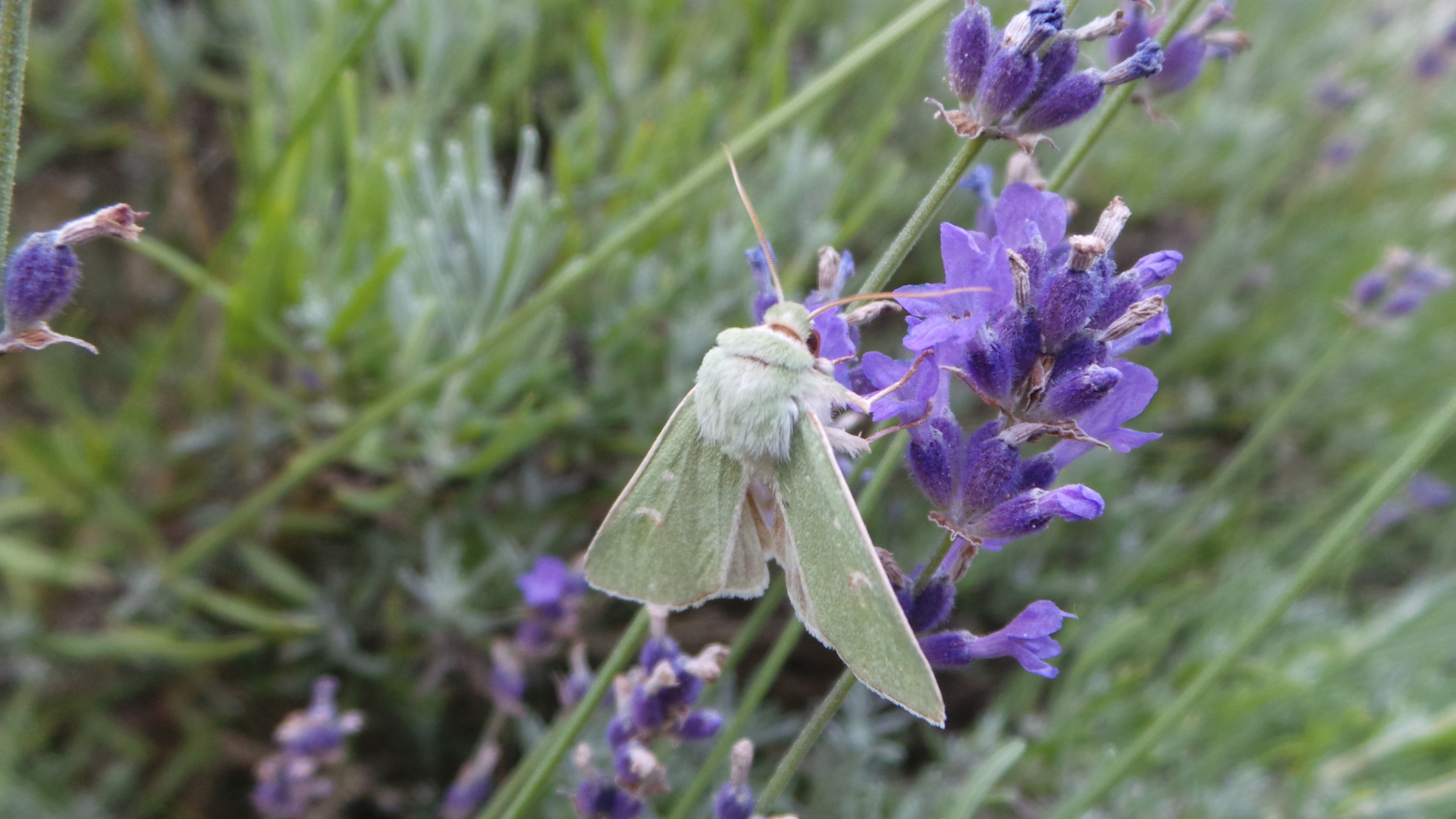Die Grüneule oder Trockenraseneule ( Calamia tridens ) habe ich überhaupt dieses Jahr zum ersten Mal gesehen. Bei uns im Süden als stark gefährdet eingestuft, dann darf sie gerne am Lavendel Nektar schlürfen: