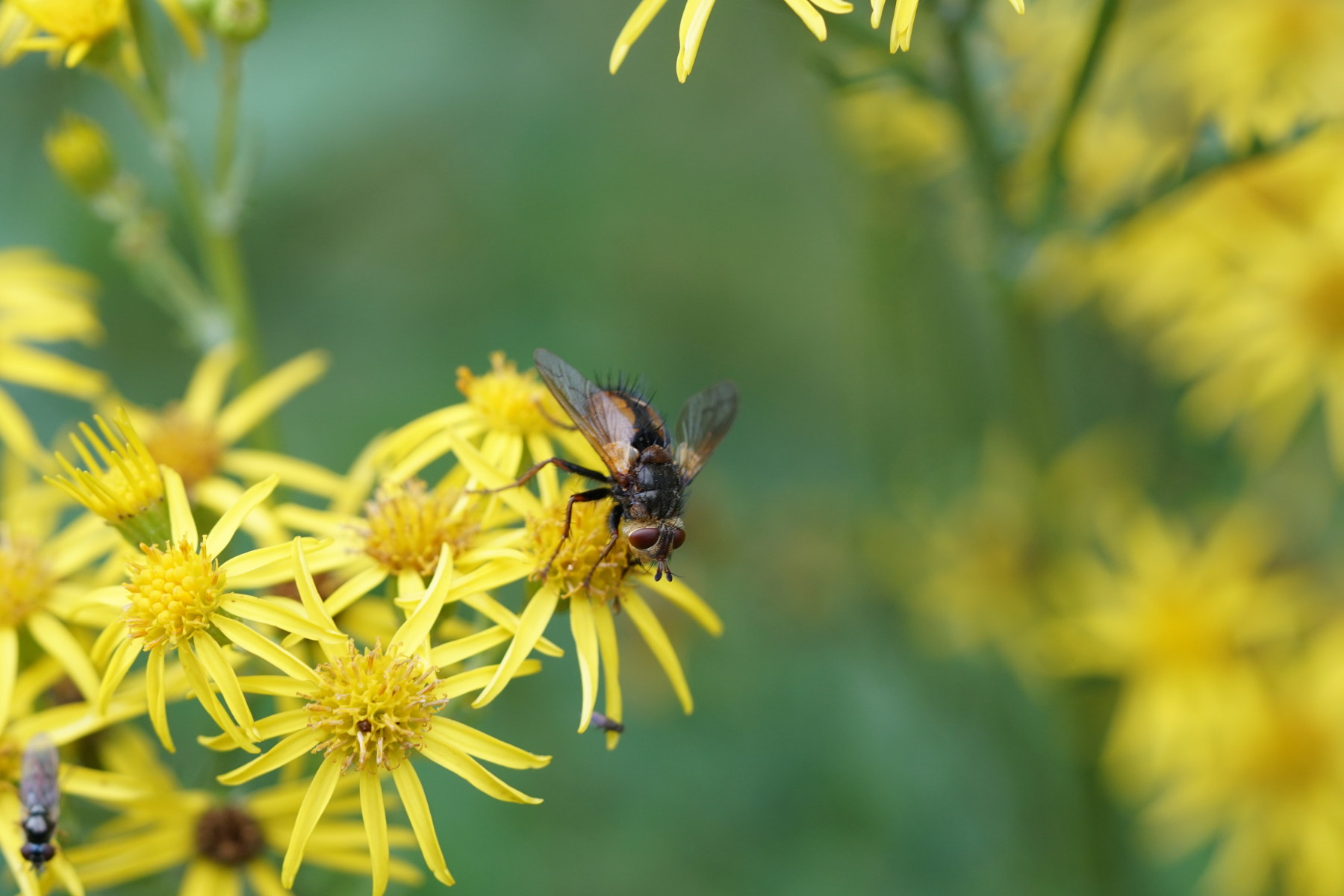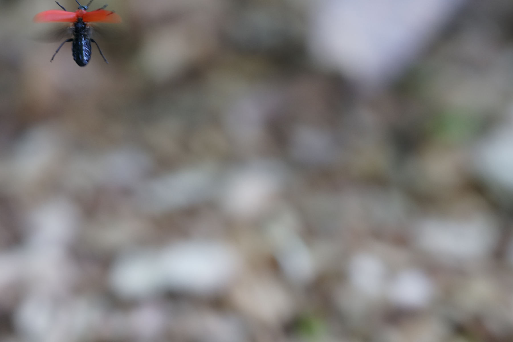 Aber vielleicht dieser Feuerkäfer den ich aus der Hand fotografierte und im Flug hinterher eilte. Dabei bin ich selber derzeit sehr schlecht auf den Beinen. Einen Treffer im Flug (naja) konnte ich auch landen. Leider nur am Bildrand erwischt.