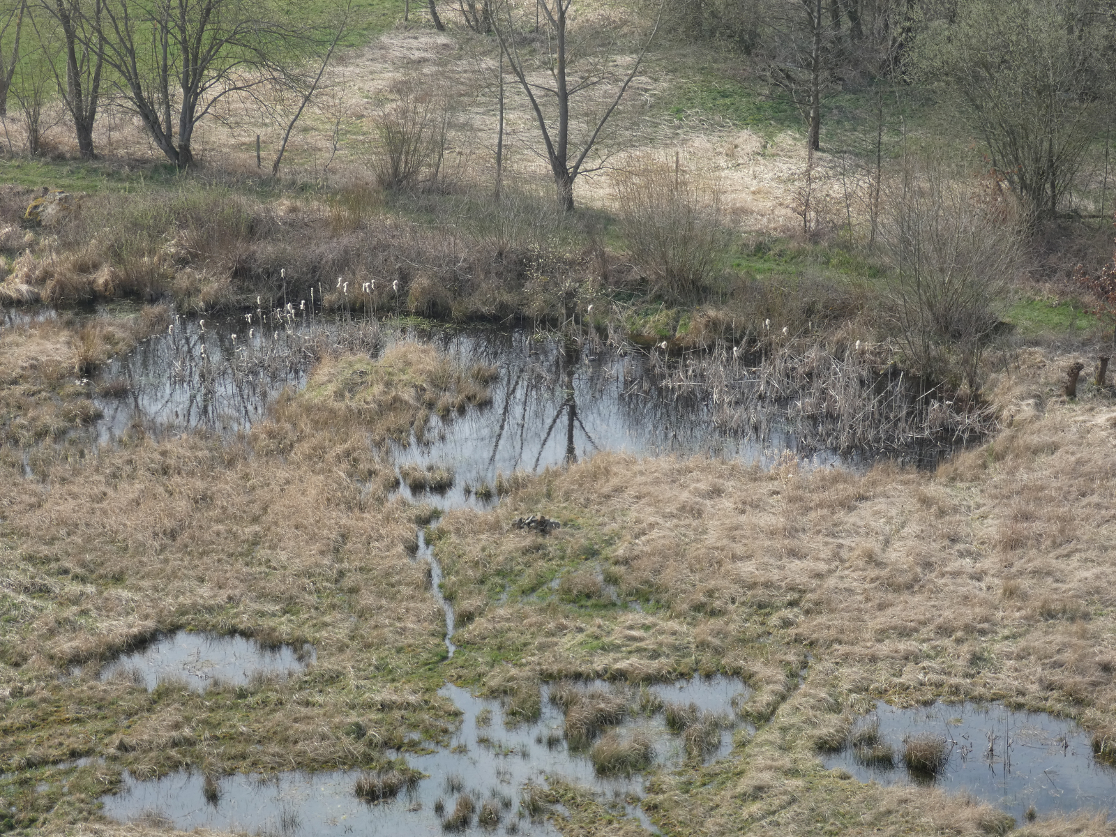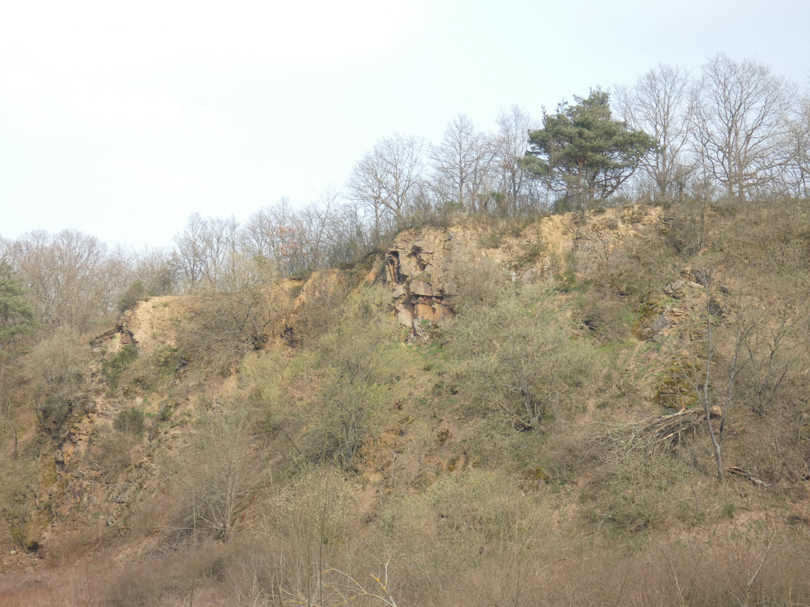 Da wir ein bisschen weiter weg von zu Hause spazieren waren, sahen wir von ganz oben ein äußerst interessantes Feuchtbiotop (Naturschutzgebiet) in einem früheren Steinbruch, von dem wir noch nie gehört hatten. Da mußten wir natürlich gleich herunterklettern und es anschauen!