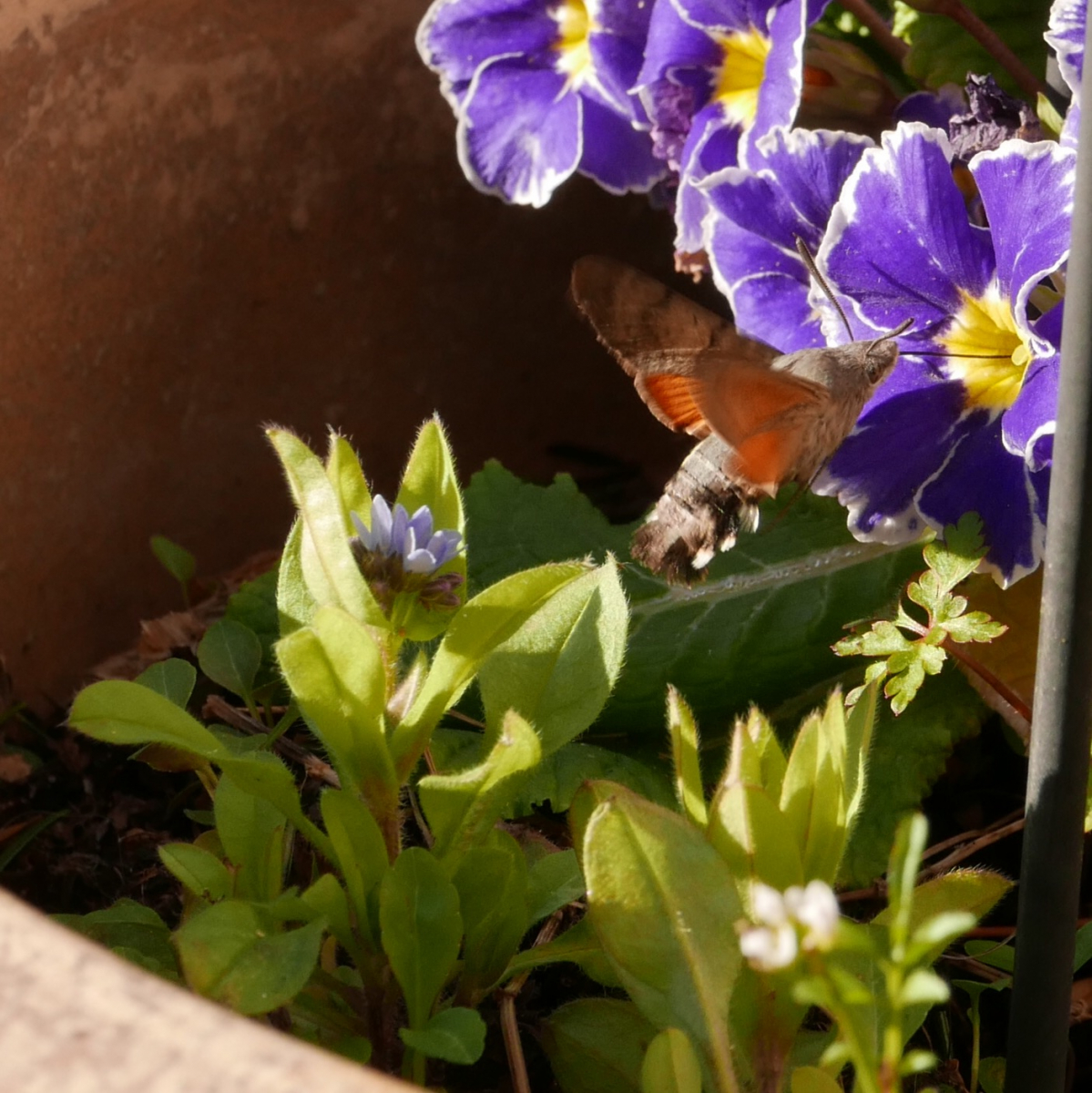 Meine Bilder sind nicht so gut, aber ich hatte auch ein kleines Highlight am 24. März. Das erste Taubenschwänzchen des Jahres (zumindest für mich)