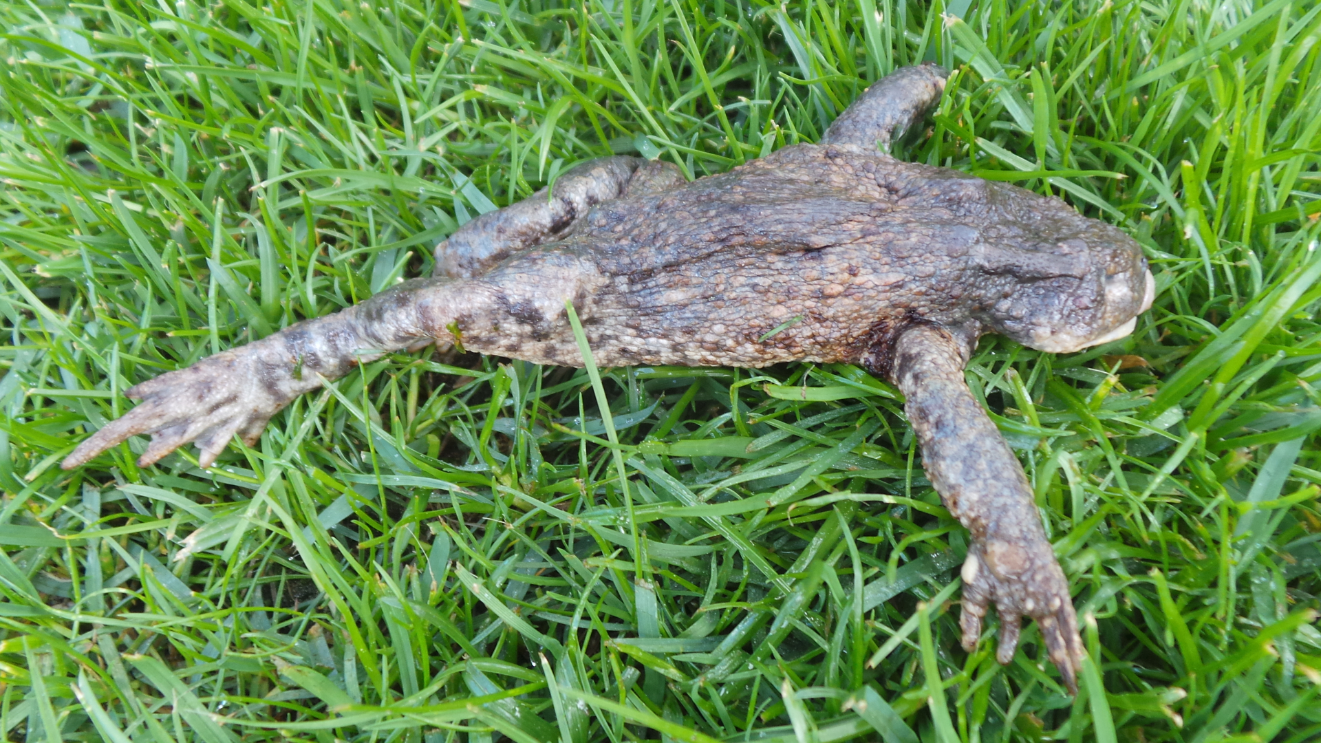 Ein paar Meter außerhalb des Gartens habe ich noch eine verendete Kröte gefunden, die lag aber wohl schon länger: