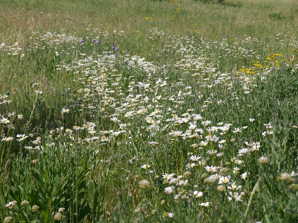Gestern war ich auch weg. Hinterm Wald neben einer Kleingartenanlage Wildblumenwiese. Kein Schmetterling.