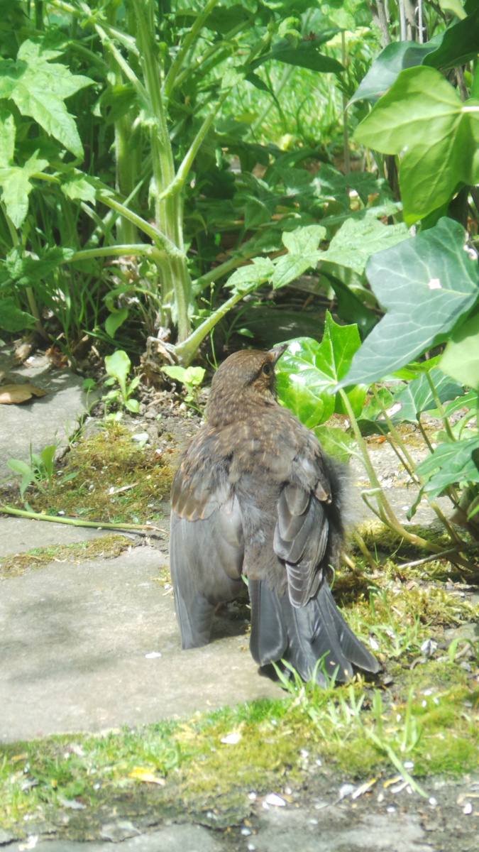 Da muss sich die Amselmama auch mal entspannen und Gefiederpflege betreiben: