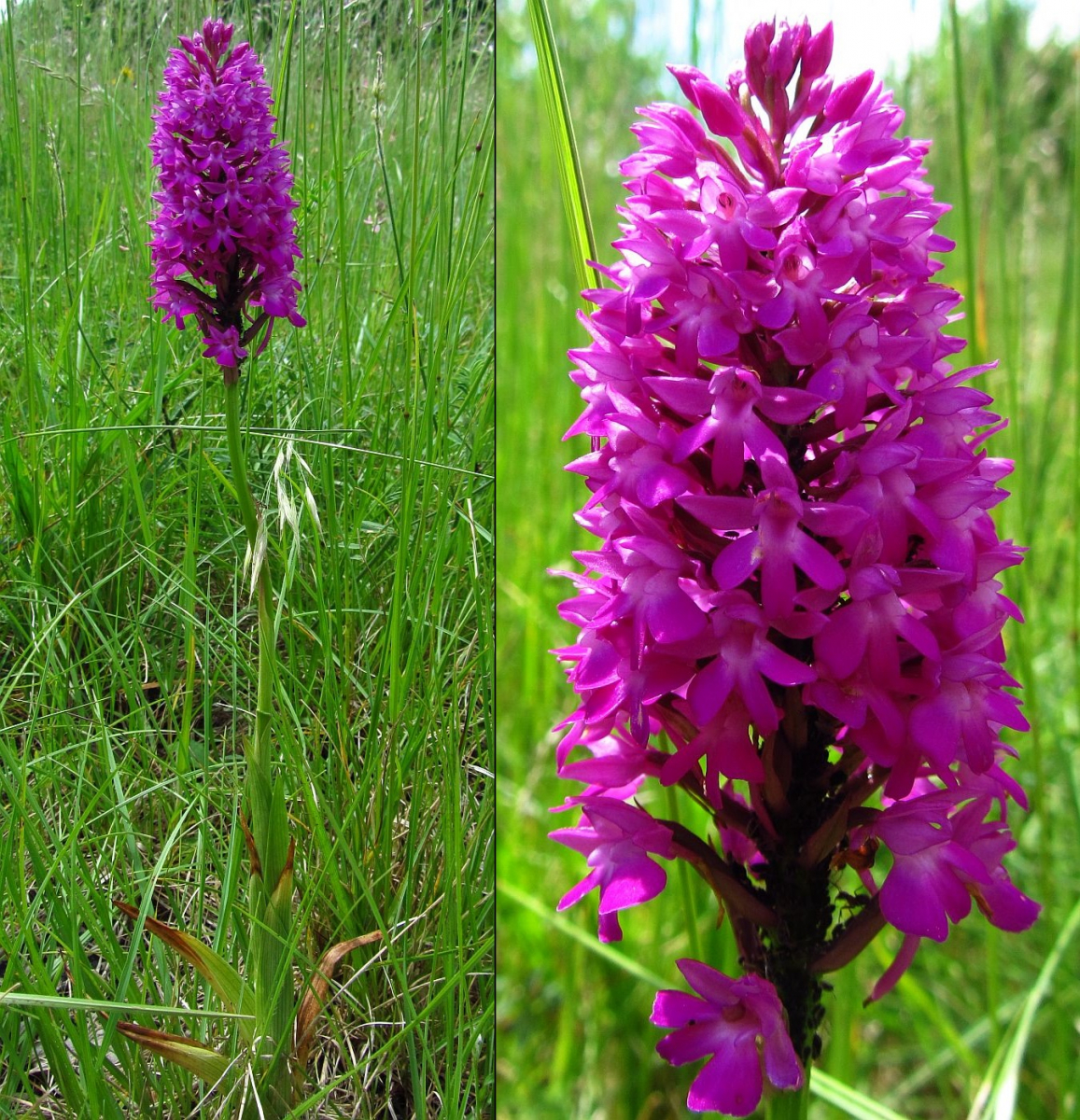 die zweite Art sollte die Pyramidenorchis (Anacamptis pyramidalis) sein. Beide Arten sind - wie vieles im Kaiserstuhl- thermophil.