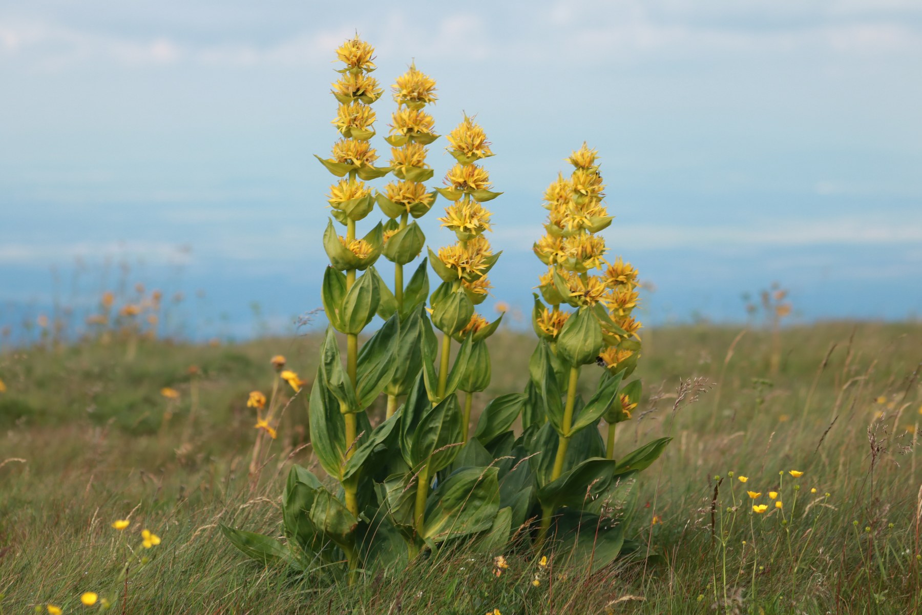 Diese wunderschöne Pflanze ist wohl der Gelbe Enzian (Gentiana lutea), direkt auf der Gipfel von Le Grand Ballon.