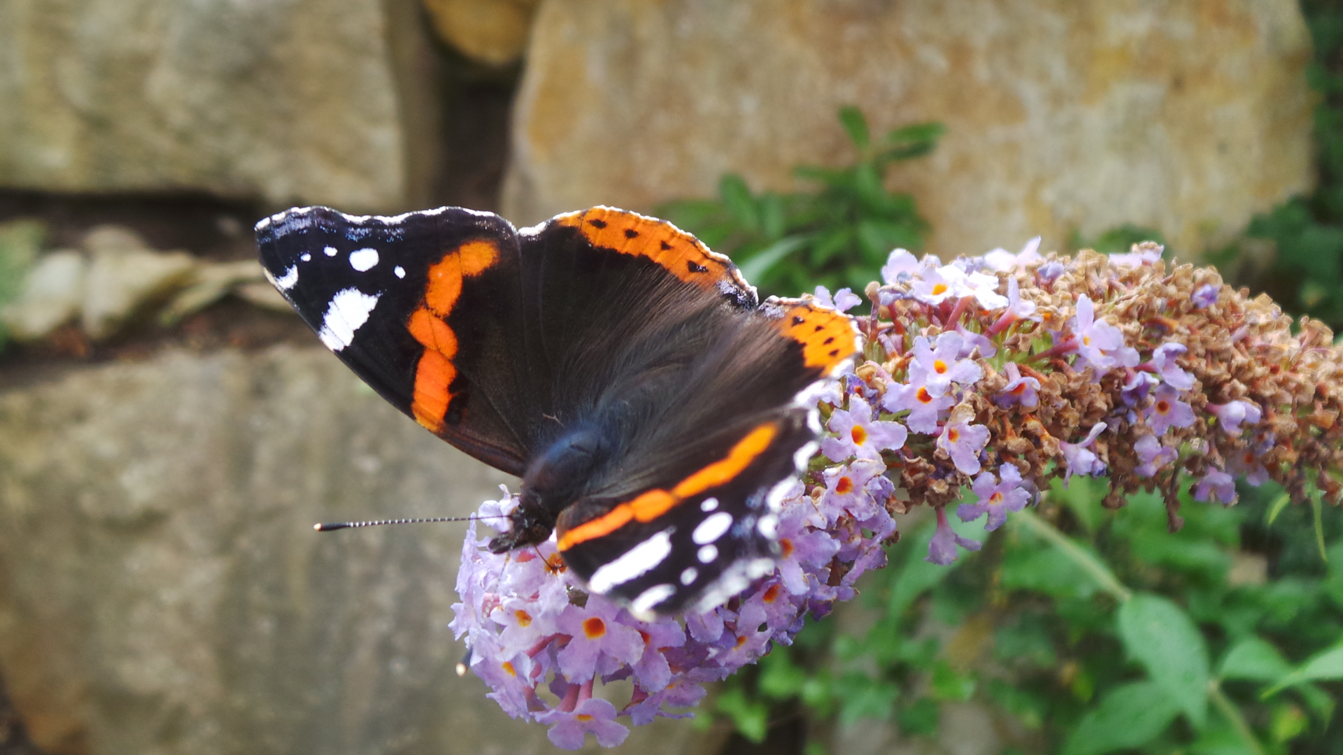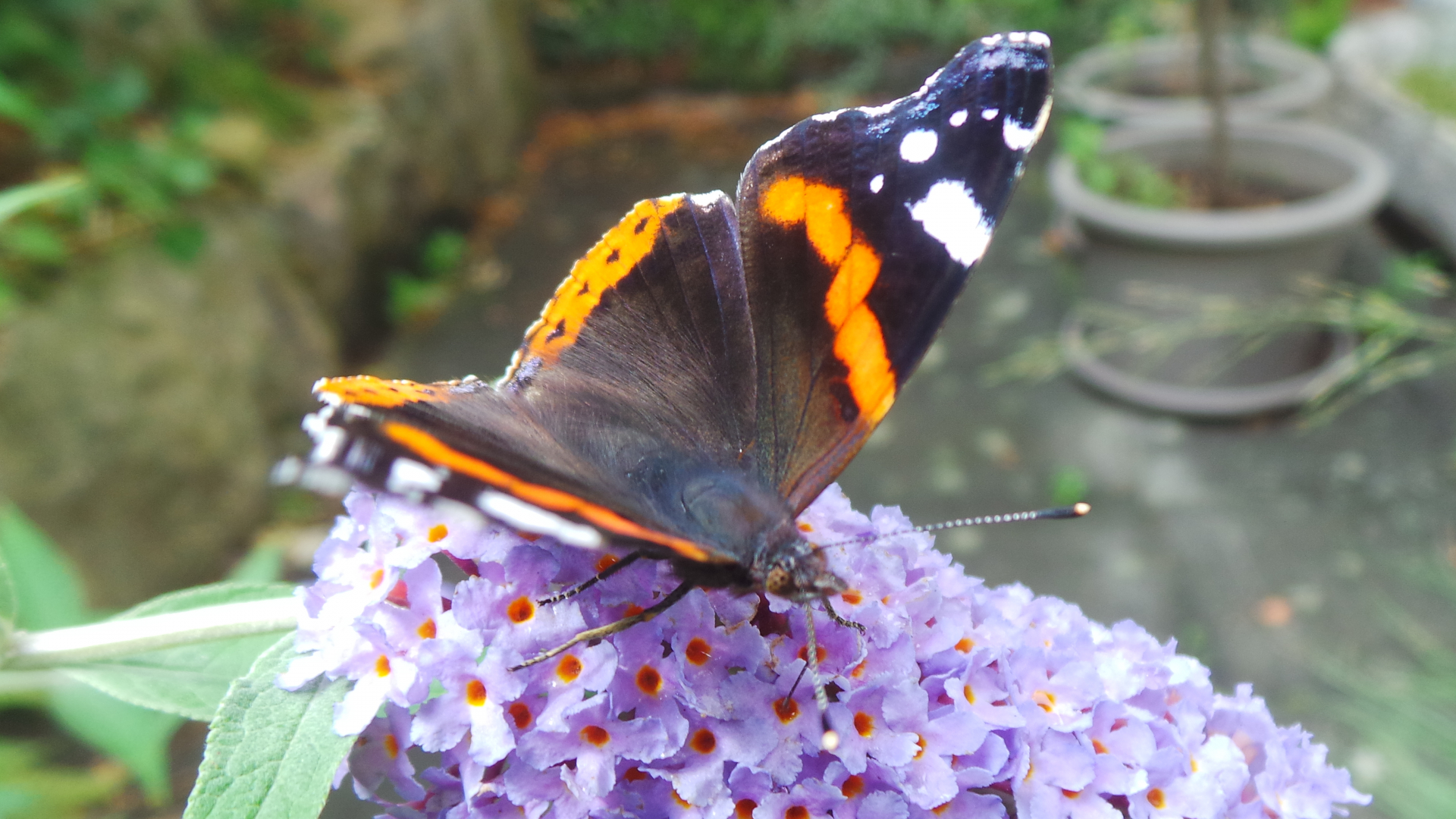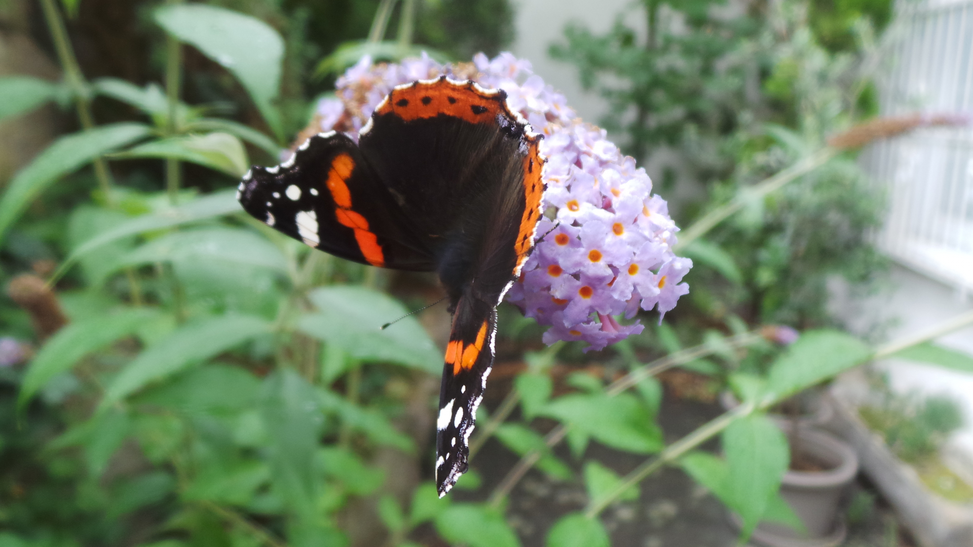 da habe ich einen Russischen Bär und einen Kaisermantel auf der Blüte des Schmetterlingsstrauchs gesehen, bei sehr derben 33°C