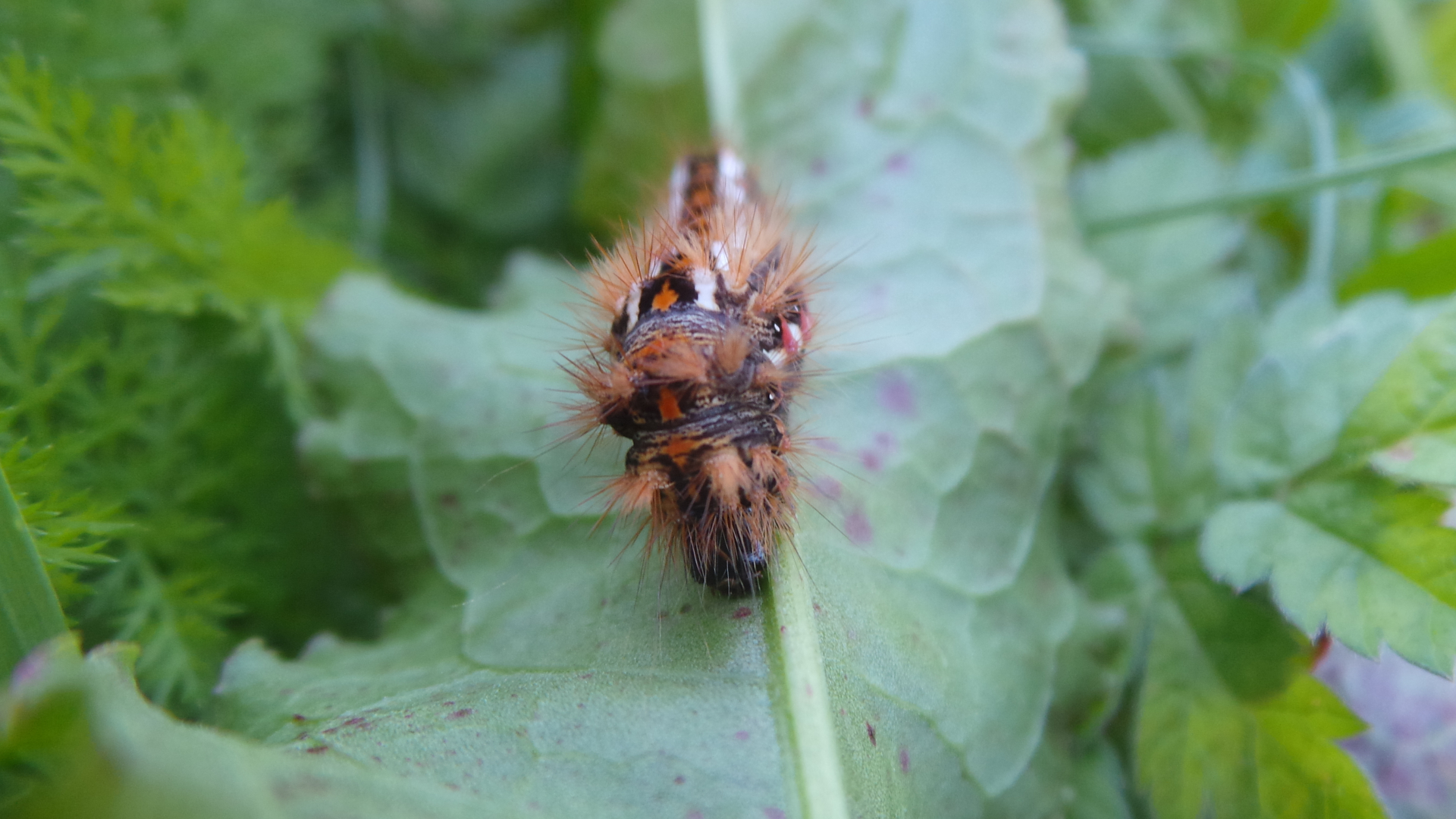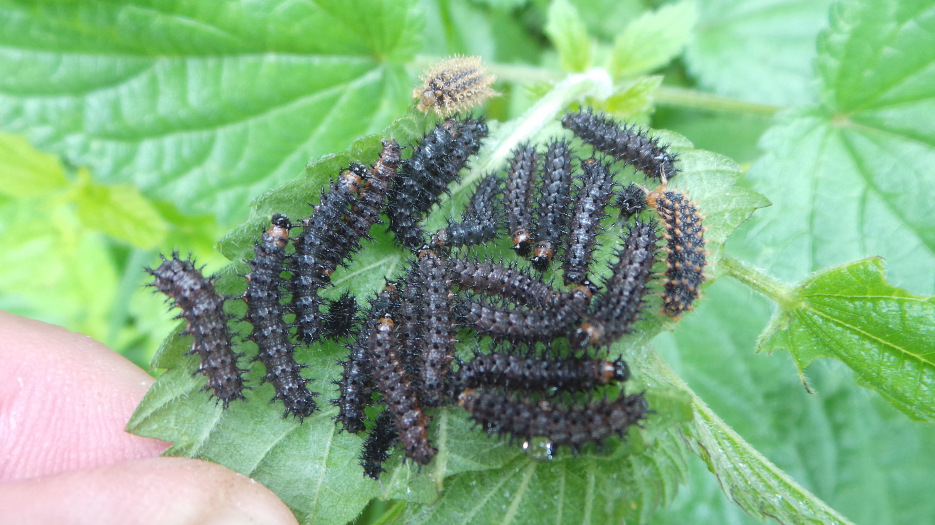 da sind die Dornen verzweigt wärend sie bei den Tagpfauenaugenraupen nur spitz sind.