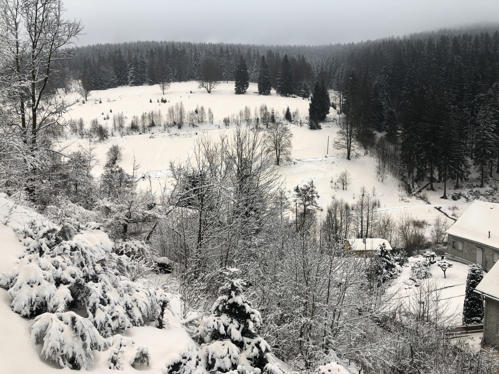 Ganz so viel Schnee hat es hier nicht, aber zum Skifahren im Hauswald hat es heute gelangt.