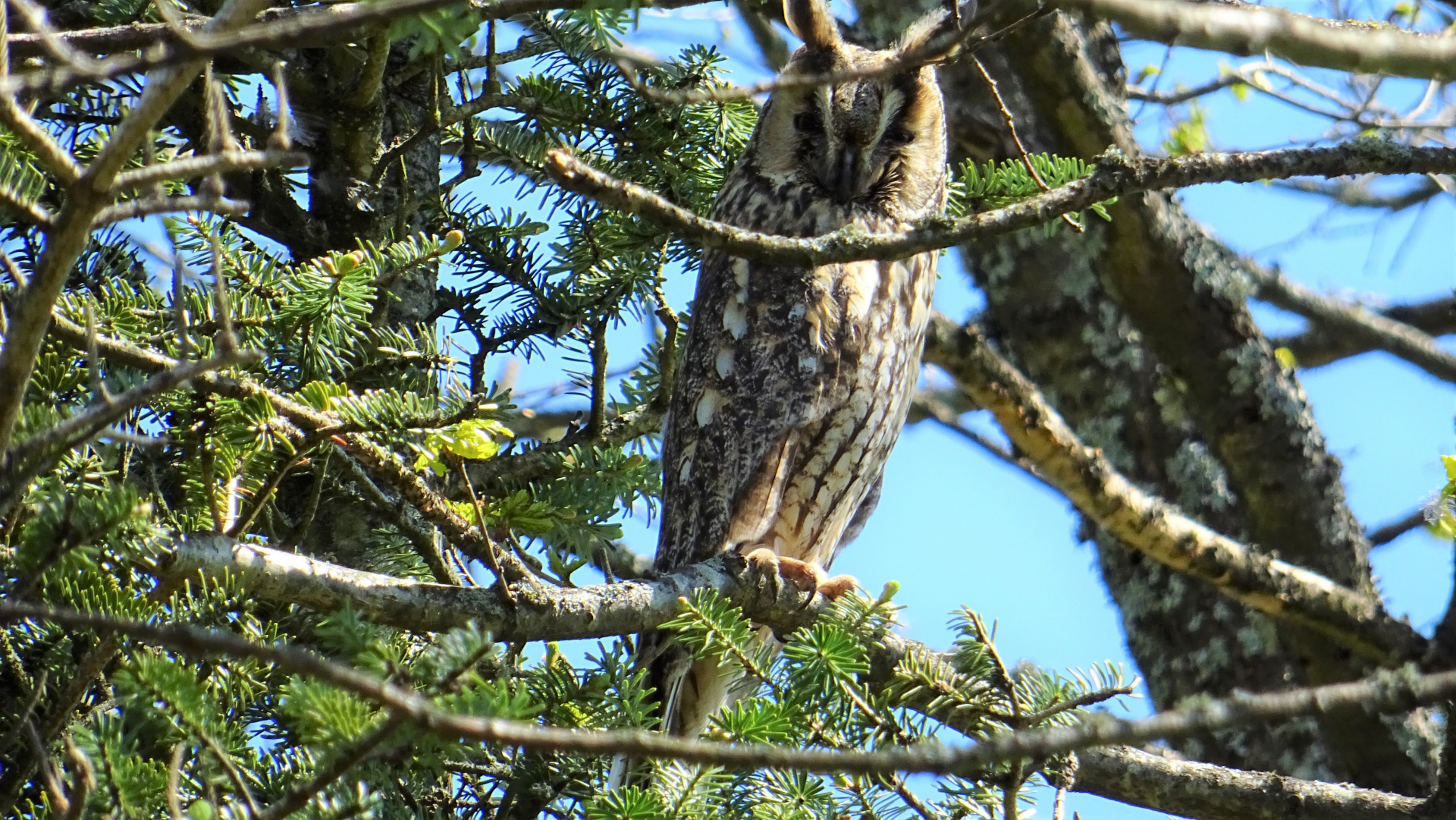 hätte aktuell noch diese Waldohreule, welche durch Gewölle-Ausscheidungen, ihren Horst/Nistplatz samt flaumigem Nachwuchs verriet! Zum Glück sehr abgeschieden, auf großem Naturareal!