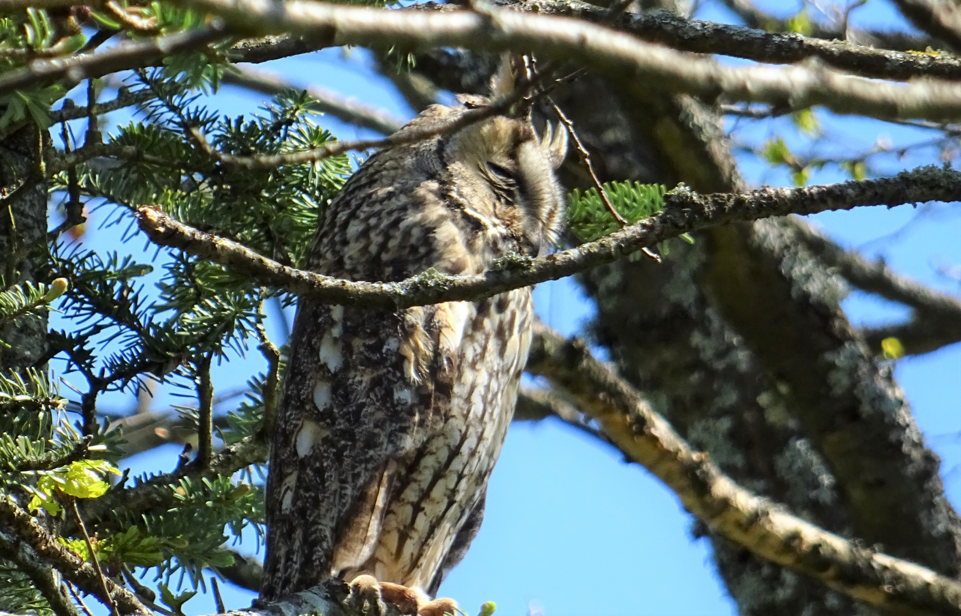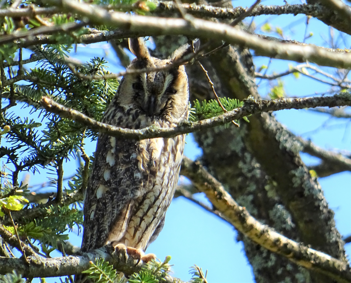 hätte aktuell noch diese Waldohreule, welche durch Gewölle-Ausscheidungen, ihren Horst/Nistplatz samt flaumigem Nachwuchs verriet! Zum Glück sehr abgeschieden, auf großem Naturareal!