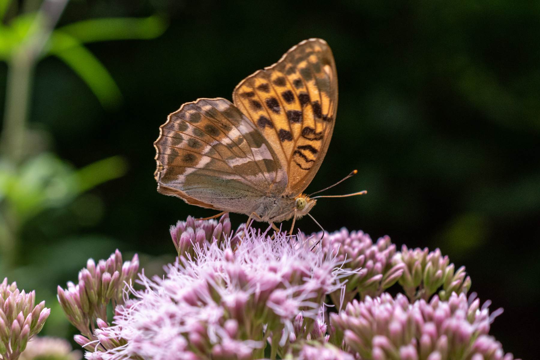 Das Kaisermantelweibchen in der dunklen Form sollte sogar die Farbvariante valesina sein.