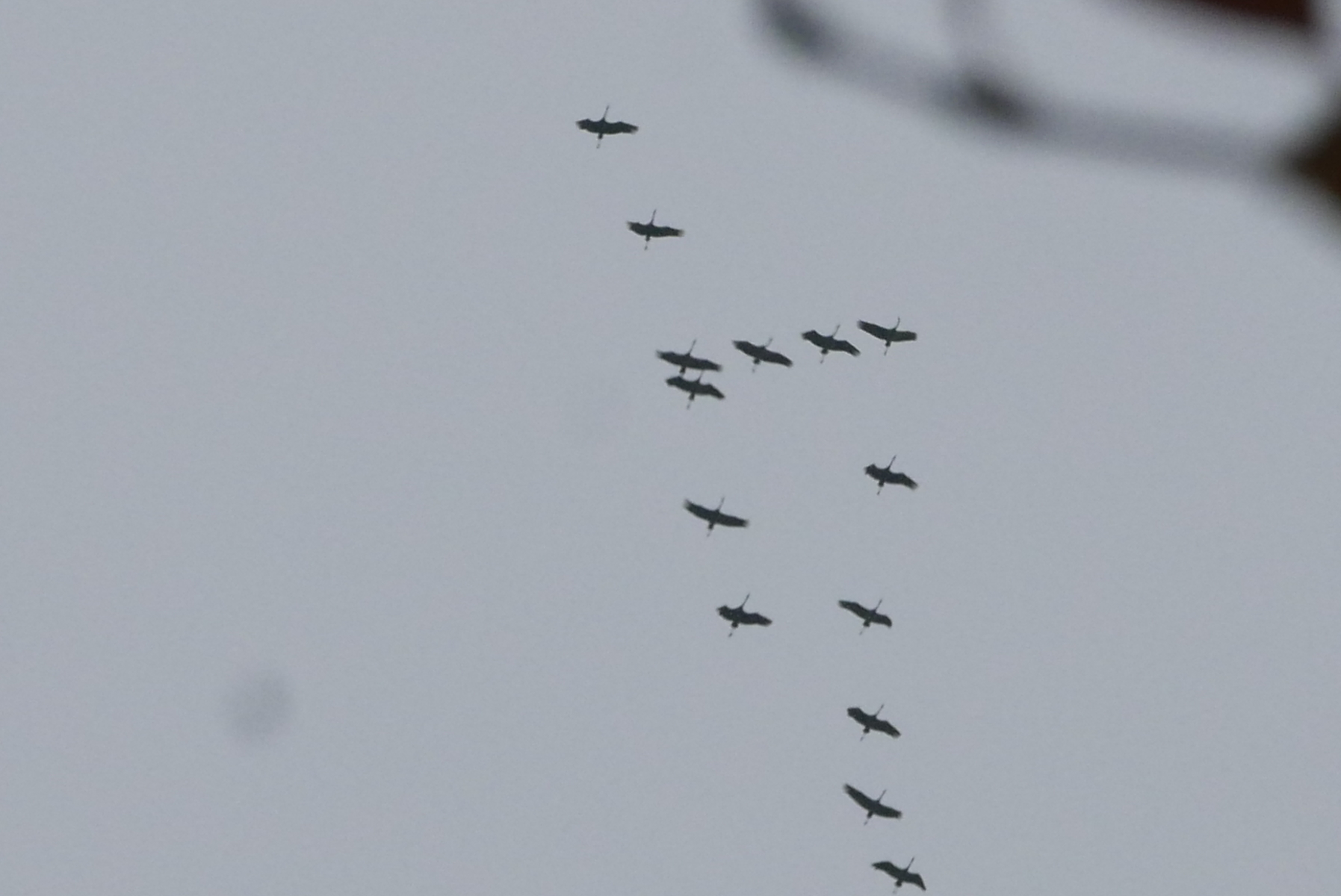 Jahr für Jahr - jetzt gerade Richtung Westen, im Frühjahr entgegengesetzt Richtung Osten fliegen die Kraniche mit ihrem eleganten Flug und ihren typischen Rufen. Ich liebe es!