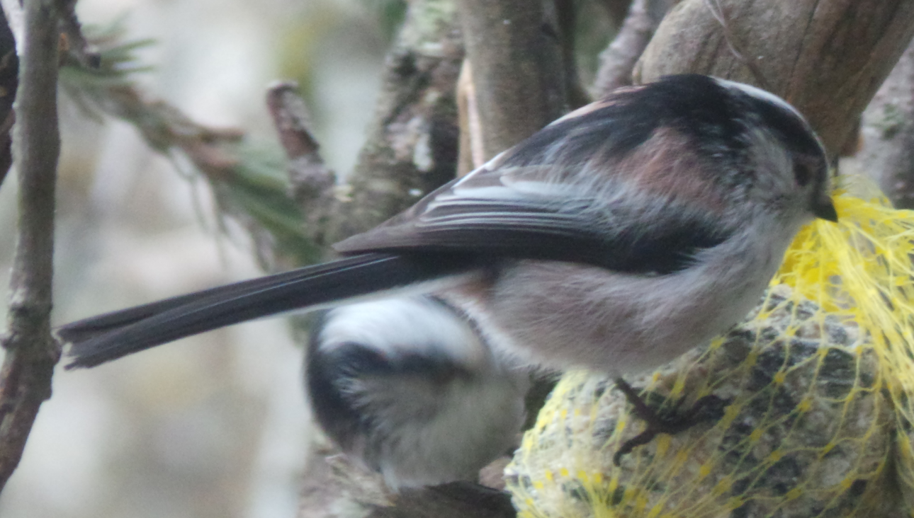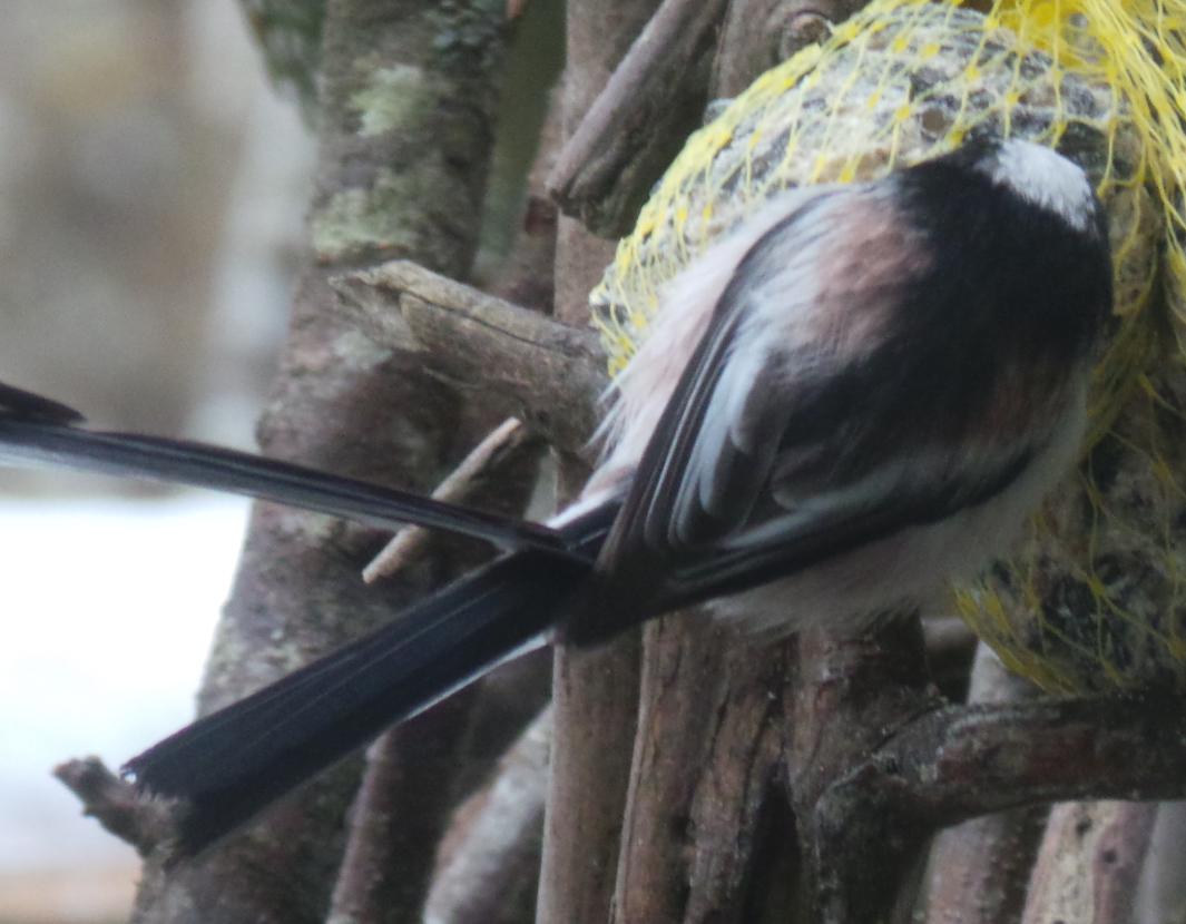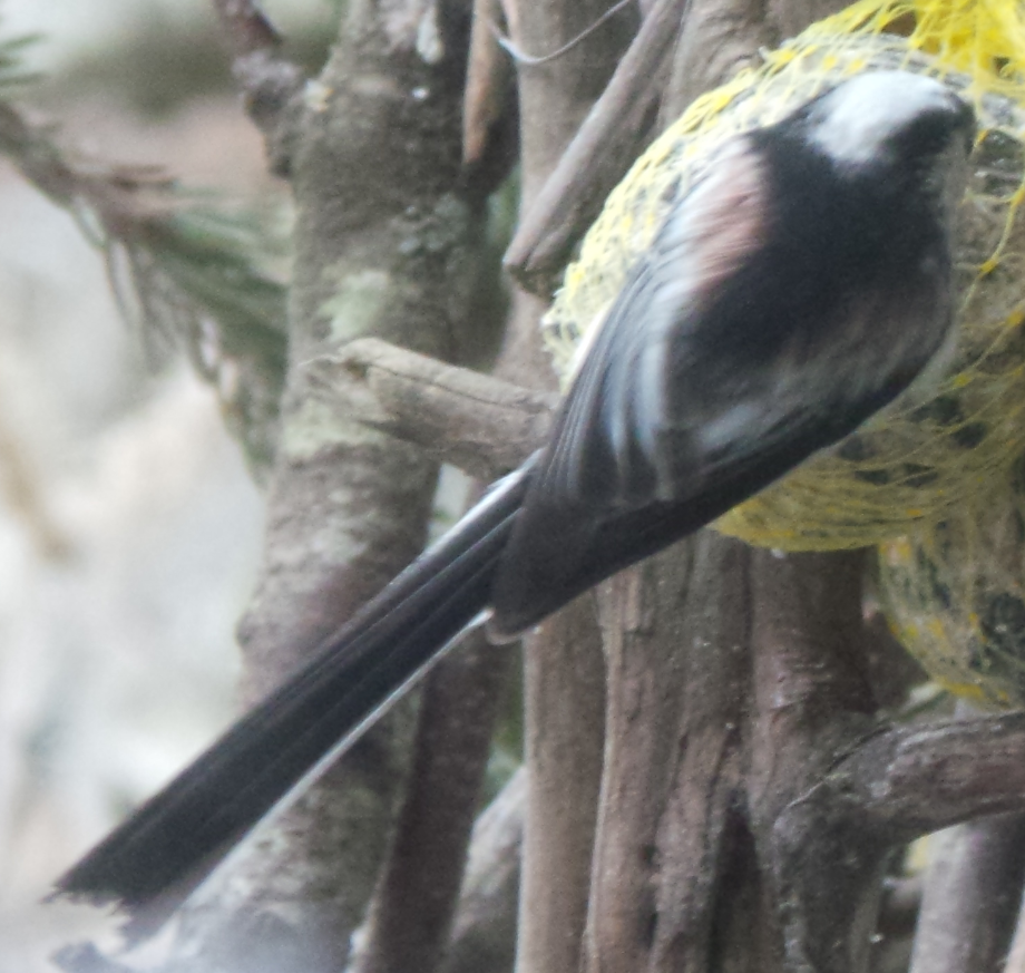 Ein außergewöhnliches ornithologisches Erlebnis hatten mein Mann und ich vorgestern bei uns im Garten an der Futterstelle: Ein ganzer Schwarm Schwanzmeisen besuchte uns! Die haben wir sonst sehr selten, und wenn, kamen sie einzeln oder paarweise...diesmal waren es 8 Stück! Die Fotos sind leider nicht besonders, da es nur Screenshots aus einem Film sind, aber ich möchte sie euch trotzdem zeigen, um einen Eindruck zu vermitteln...Hat das von euch auch schon mal jemand erlebt, Schwanzmeisen im Schwarm?