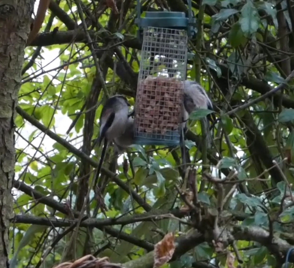 Ein außergewöhnliches ornithologisches Erlebnis hatten mein Mann und ich vorgestern bei uns im Garten an der Futterstelle: Ein ganzer Schwarm Schwanzmeisen besuchte uns! Die haben wir sonst sehr selten, und wenn, kamen sie einzeln oder paarweise...diesmal waren es 8 Stück! Die Fotos sind leider nicht besonders, da es nur Screenshots aus einem Film sind, aber ich möchte sie euch trotzdem zeigen, um einen Eindruck zu vermitteln...Hat das von euch auch schon mal jemand erlebt, Schwanzmeisen im Schwarm?
