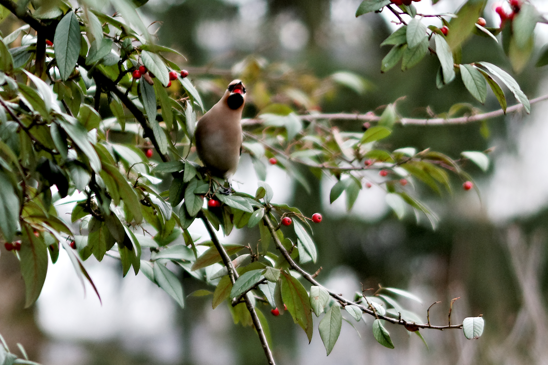 Sie fressen die Beeren vom Cotoneaster. Ich konnte sie direkt von unserer Terrassentür fotografieren.