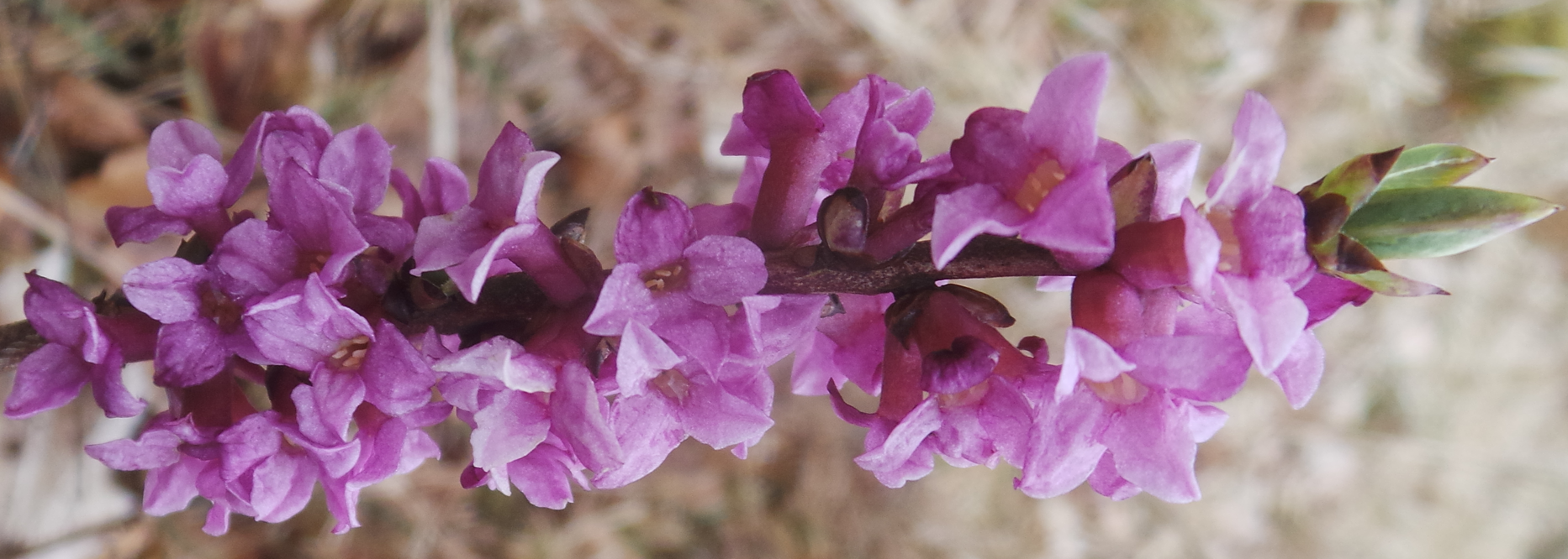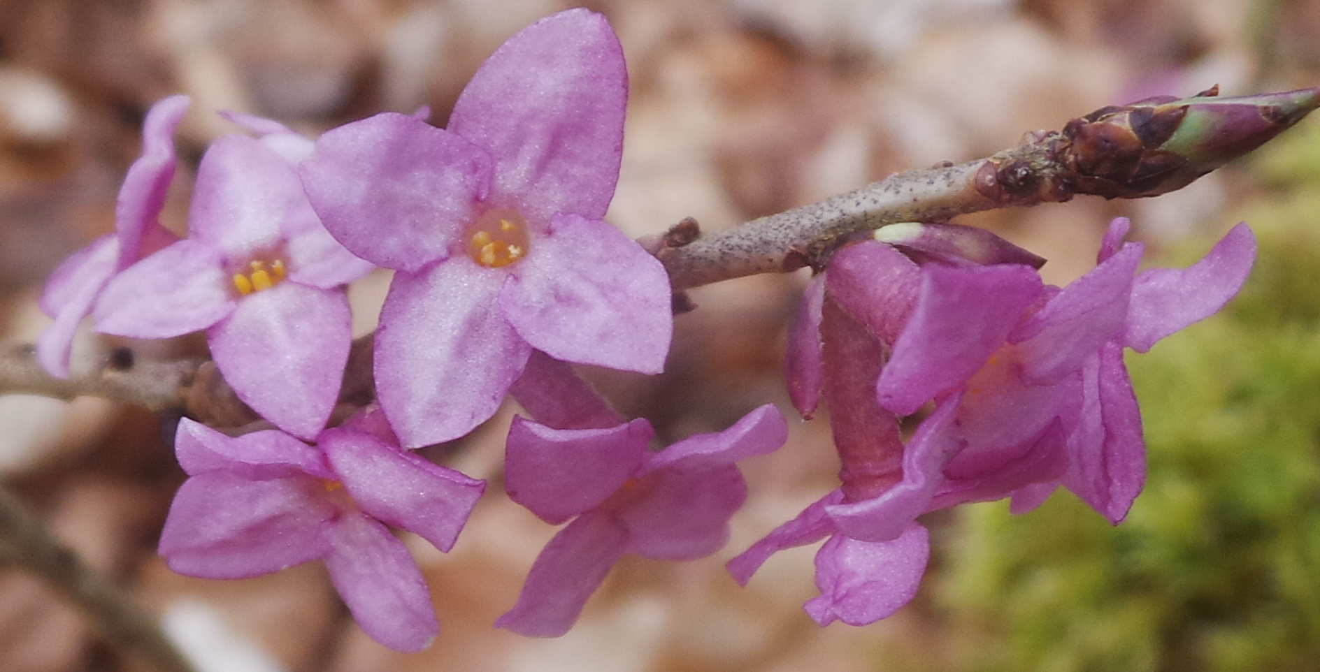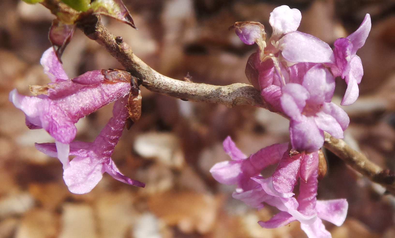 Neben der rein optischen Schönheit brilliert der Seidelbast auch mit angenehm süßlichem Duft. Oft riecht man ihn bevor man ihn sieht. Manchmal blüht er schon Ende Januar, dieses Jahr zeigten sich die Blüten erst im März.