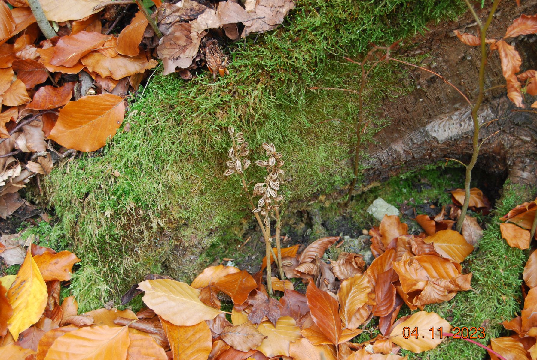 bei meiner gestrigen Schnecklings-Aufsammlung im Waldmeister-Buchenwald treffe ich doch noch auf eine schöne und in Ostthürigen kaum noch vorhandene Orchideenart: Neottia nidus-avis / Vogel-Nestwurz.