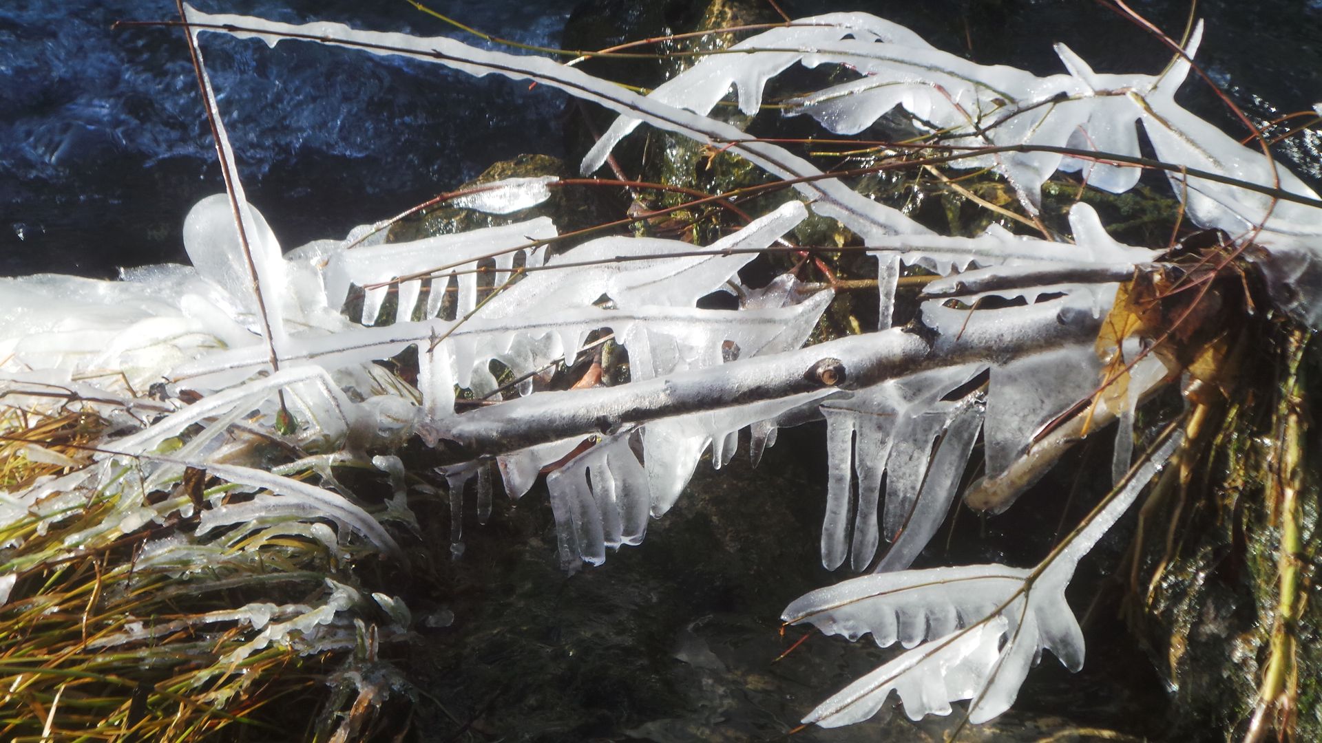 Ich habe ja schon so manche Biberratte gesehen, nur noch nie auf einem zugefrorenen Teich: