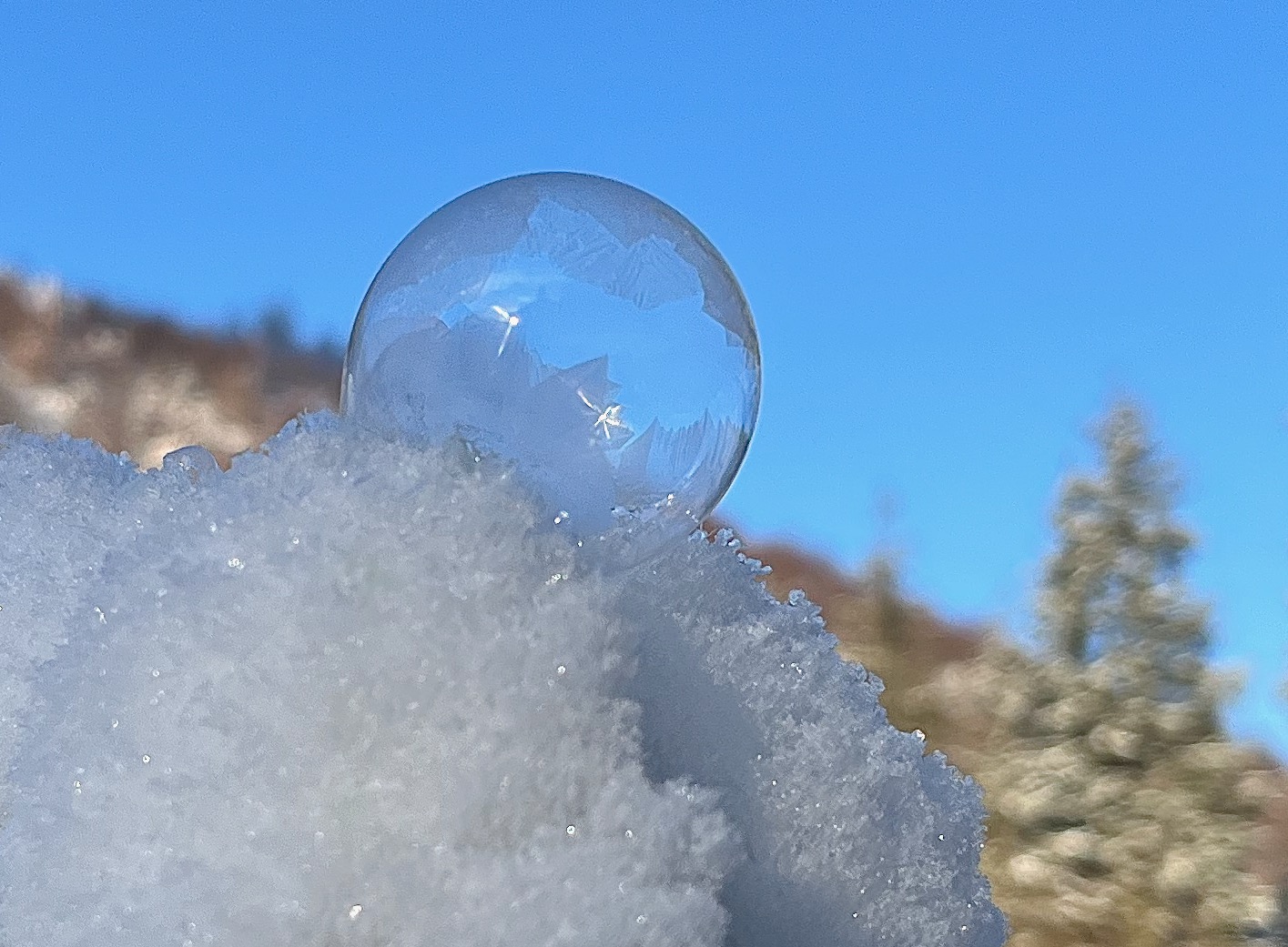 So gut ins Licht gesetzt habe ich Eis-Seifenblasen noch nicht gesehen!
