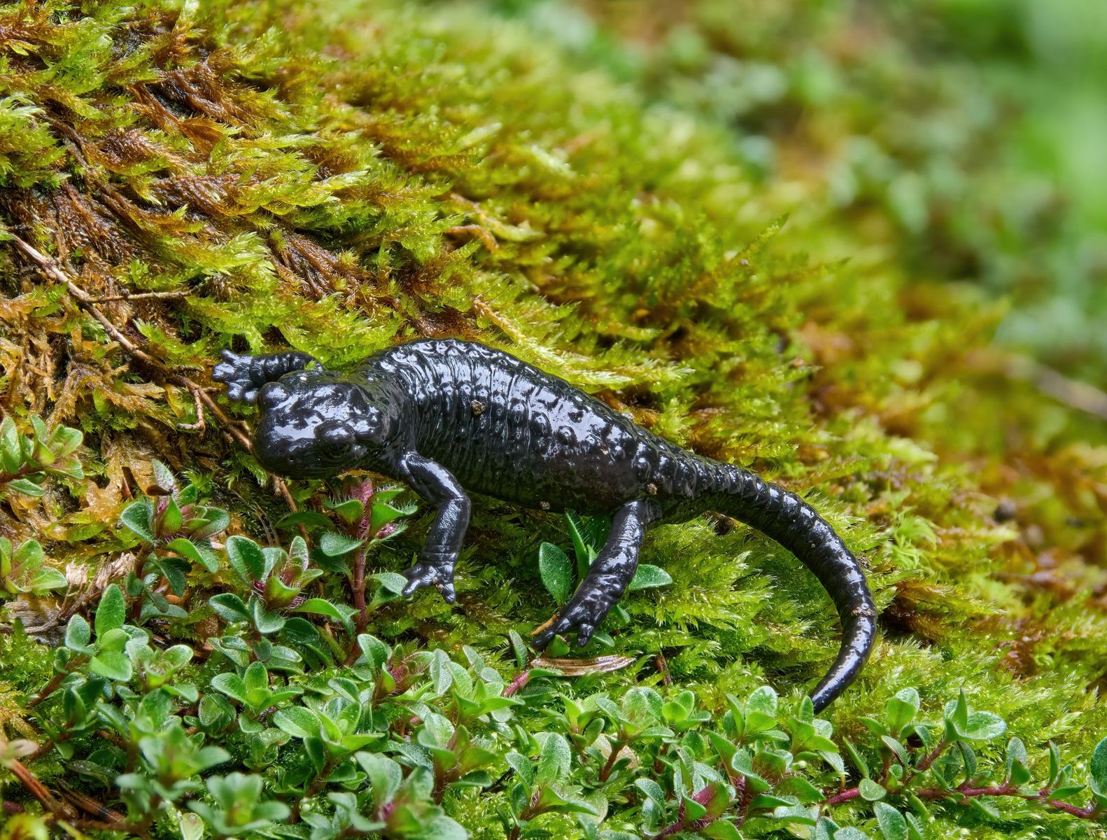 Feuersalamander habe ich tagsüber schon oft finden können. Immer wenn es nach einigen Tagen Trockenheit zu regnen beginnt, lohnt sich die Suche an naturnahen Bächen. Nachstehend ein trächtiges Weibchen. Letzten Juni stießen wir im Berner Oberland bei regnerischem Wetter erstmals an verschiedenen Stellen auf Alpen-Salamander. Diese sind etwas kleiner als FS.