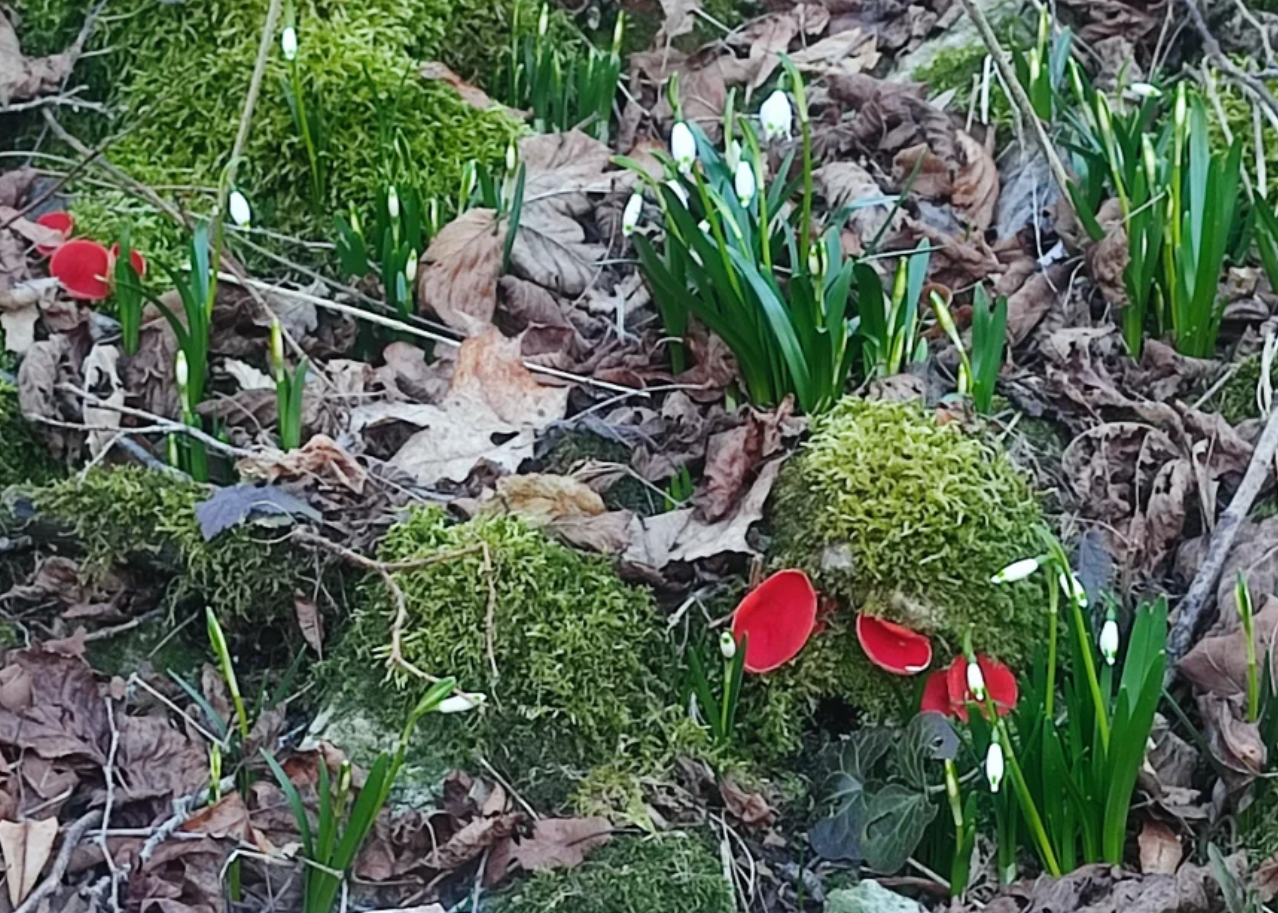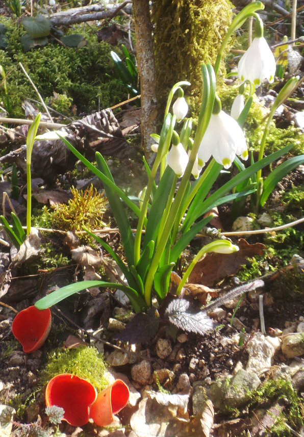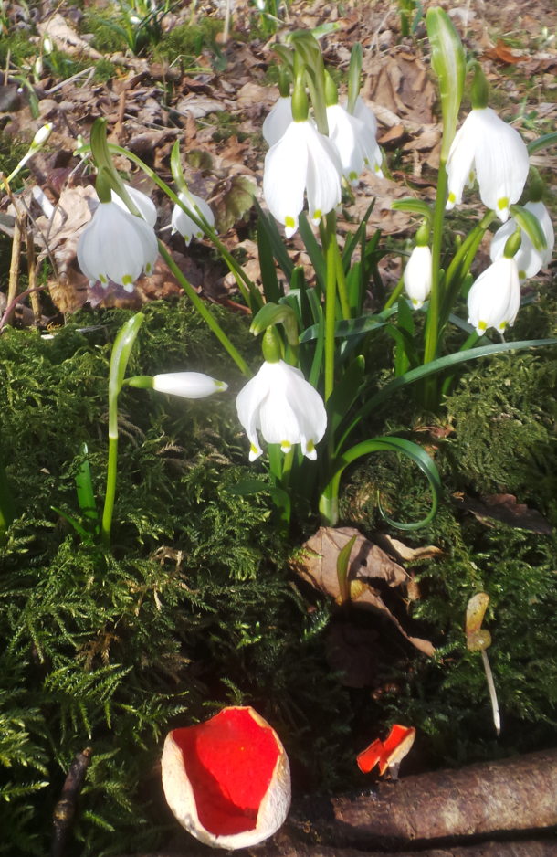 ...........sind ja in ihrer Weißigkeit besonders adrett mit bunten Nachbarn, sehr gerne gesehen zusammen mit den roten Kelchbecherlingen: