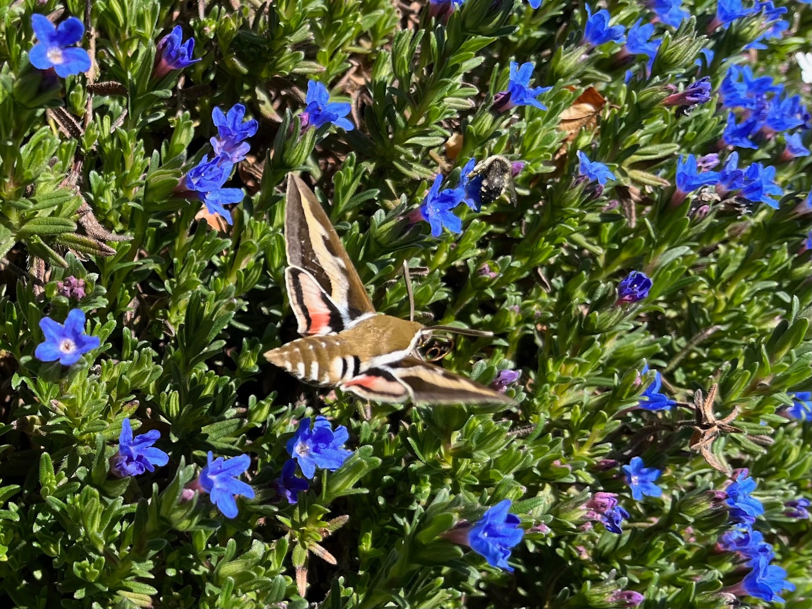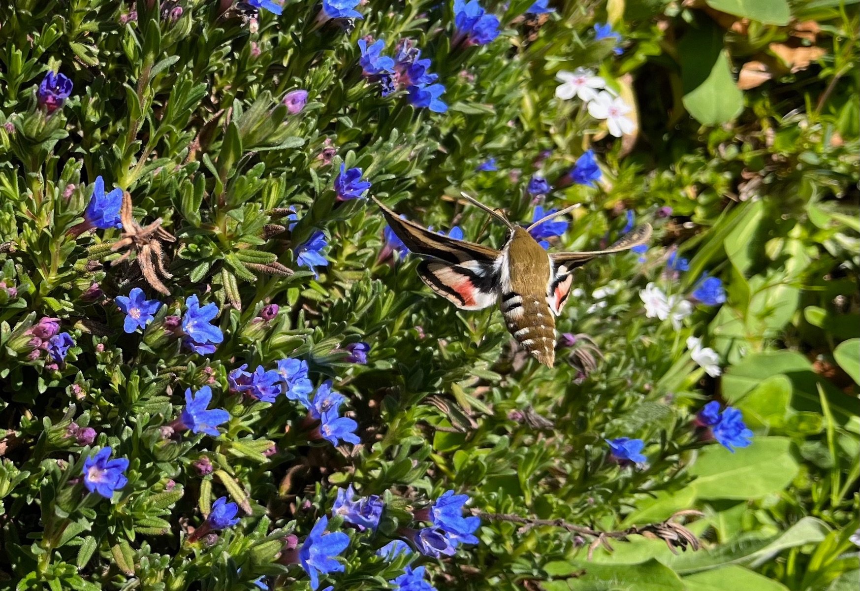 Mit zunehmender Trockenheit schwindet die Aussicht auf Pilze. Die Einzigen, die so richtig von der Dürre profitieren, sind die Falter. Etliche Labkrautschwärmer bevölkern gerade den Garten und Wegränder.