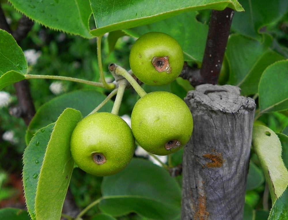 Dank der Pinselei meiner Frau hängen am Nashi-Baum viele Früchte.....