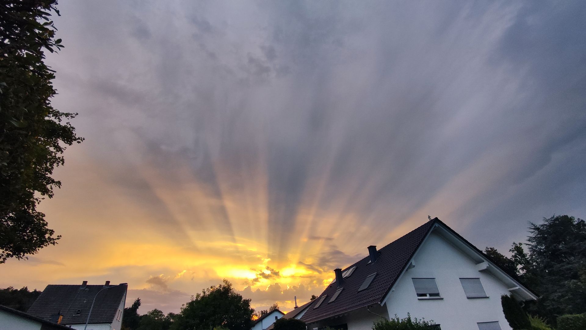 Toller Sonnenuntergangshimmel, den ich gerade von meinem Lieblingsplatz vor dem Haus von meiner Hollywoodschaukel aus beobachtet habe.