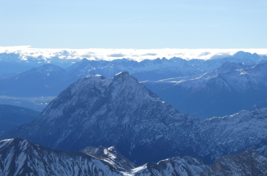 Von ebenda in die andere Richtung hätte ich noch den Hochvogel. Am linken Bildrand schwingt sich der Säntis auf.