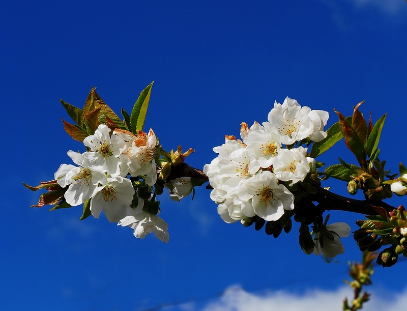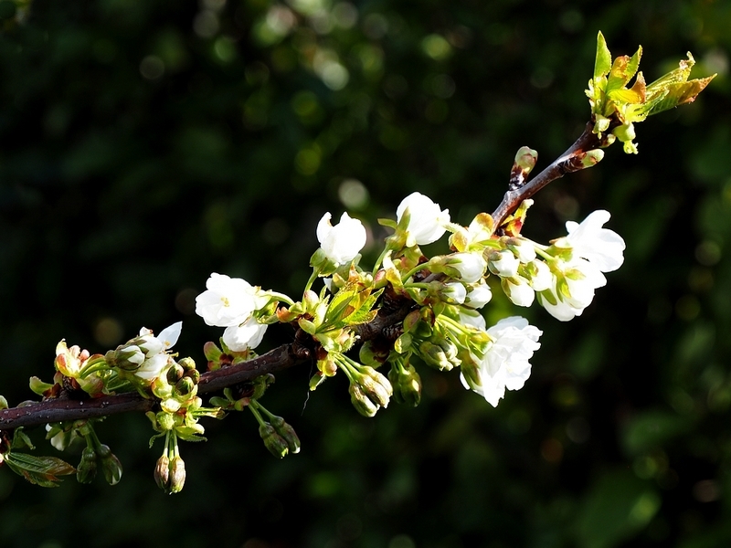Der Kirsch- und der Nashibaum stehen schon in voller Blüte.....