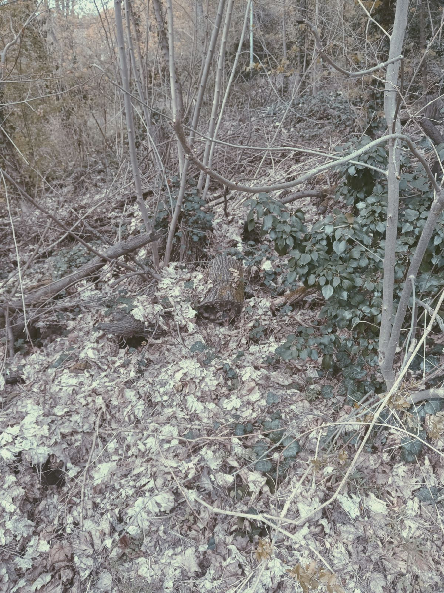 Zukuenftiger Sammelstandort Laubwaldhang mit Acer capmestre. Tip: FrK am liegenden, etwas sicher zugänglichen Baumstück ohne Telezoom.